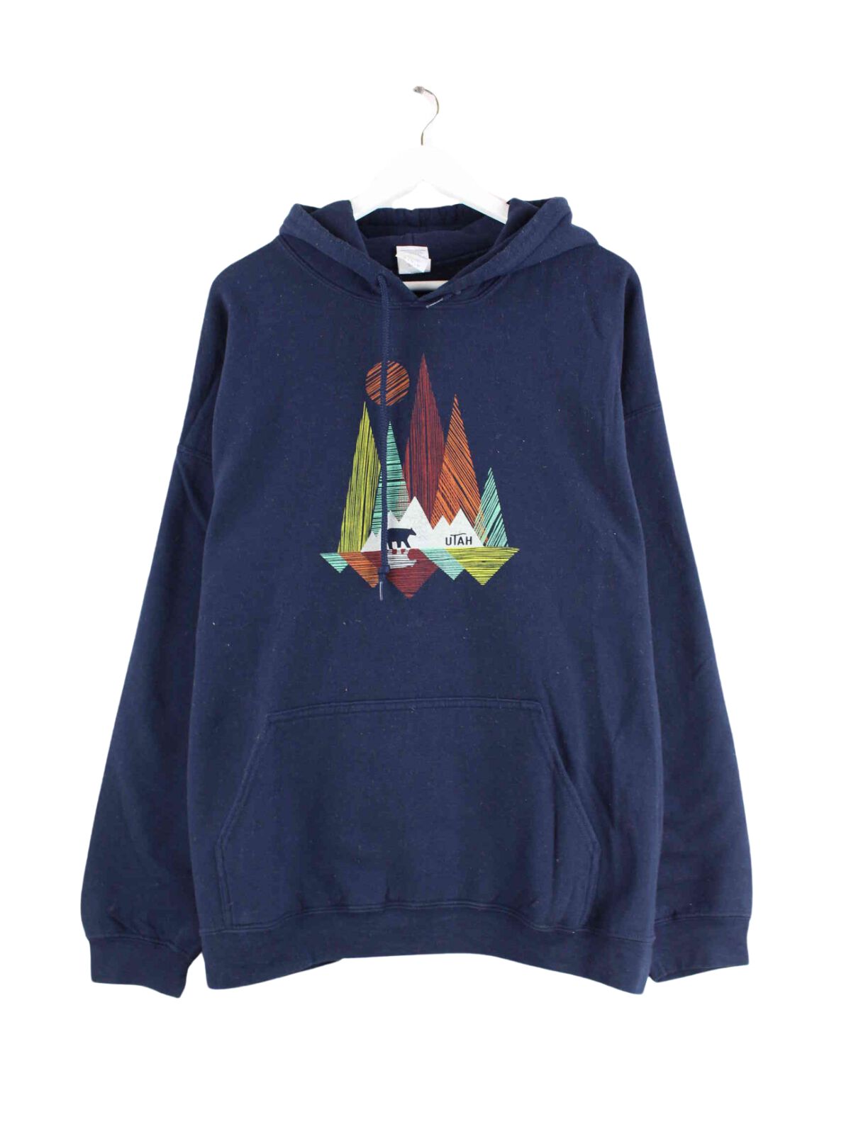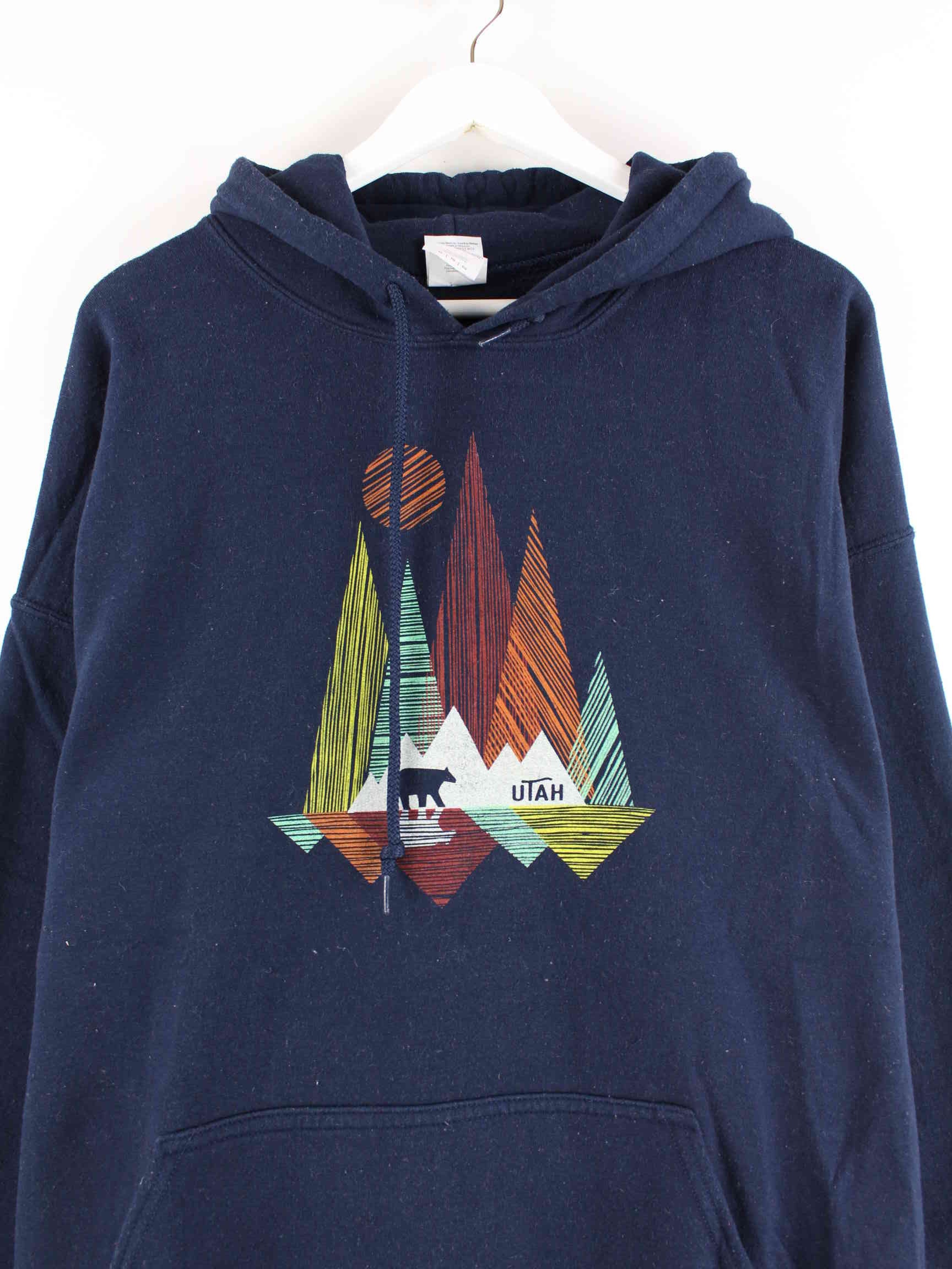 Gildan hoodie in size XL from the early 2000s. It is made from a cotton blend and is available from us in blue. With rare Utah print.
