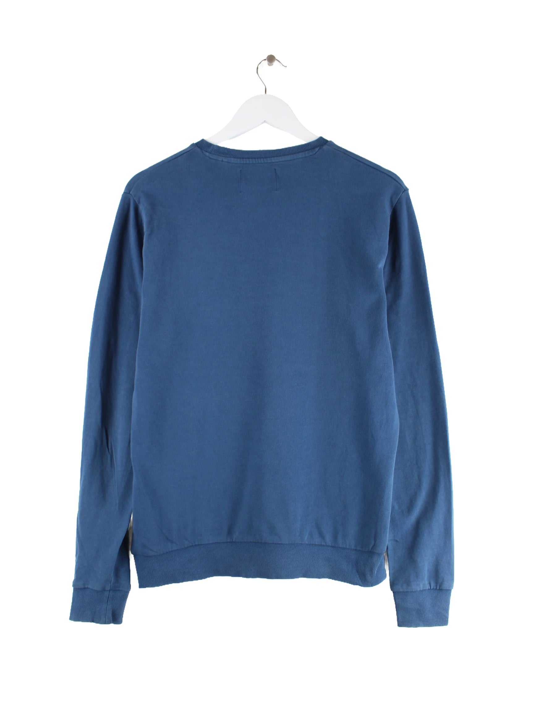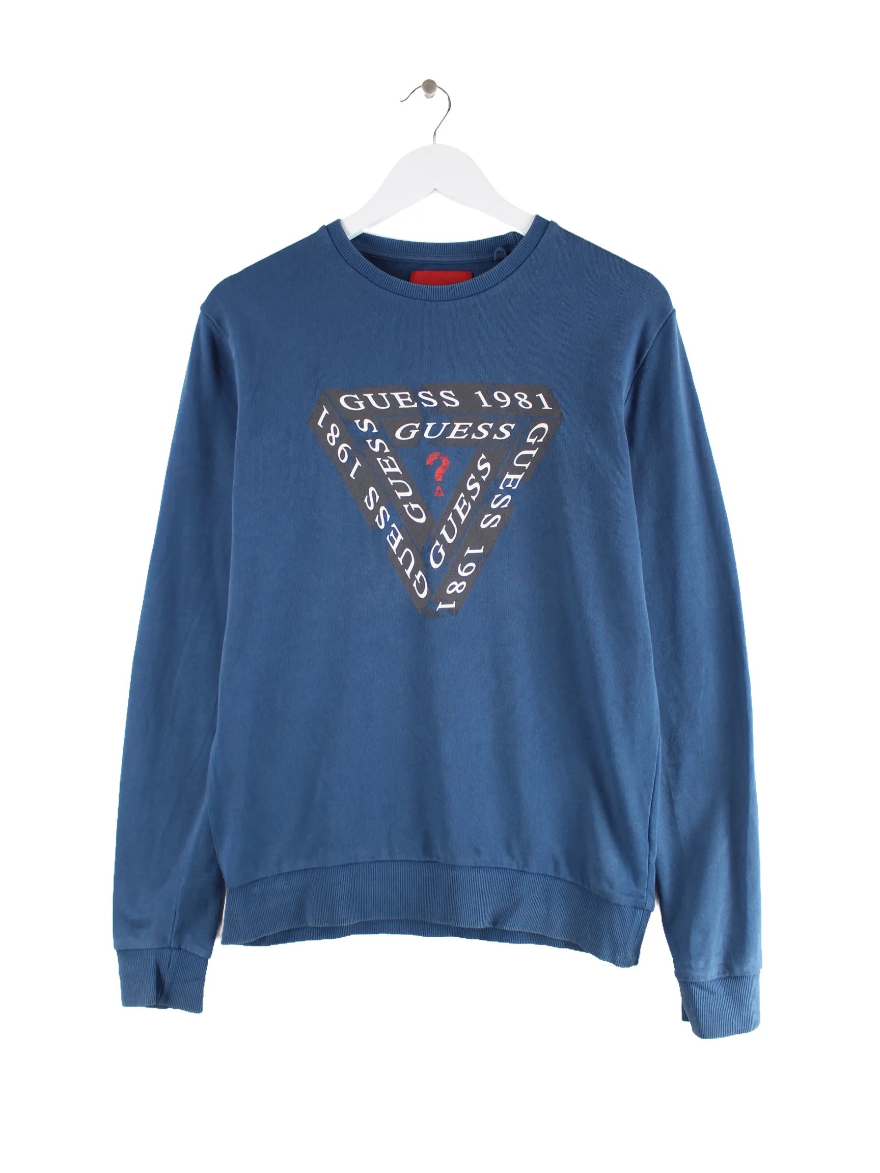Sweater des Labels Guess in Größe S. Er ist aus einer Baumwollmischung hergestellt und in Blau auf Lager.