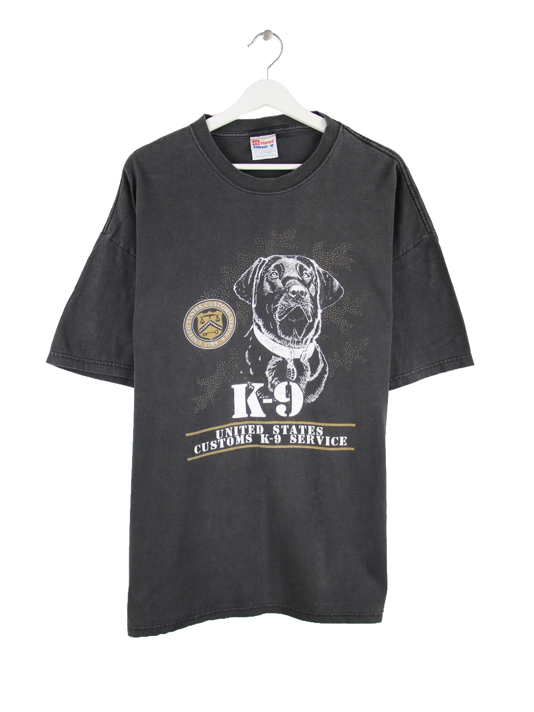 Hanes 00s K-9 Dog Print T-Shirt Schwarz XXL