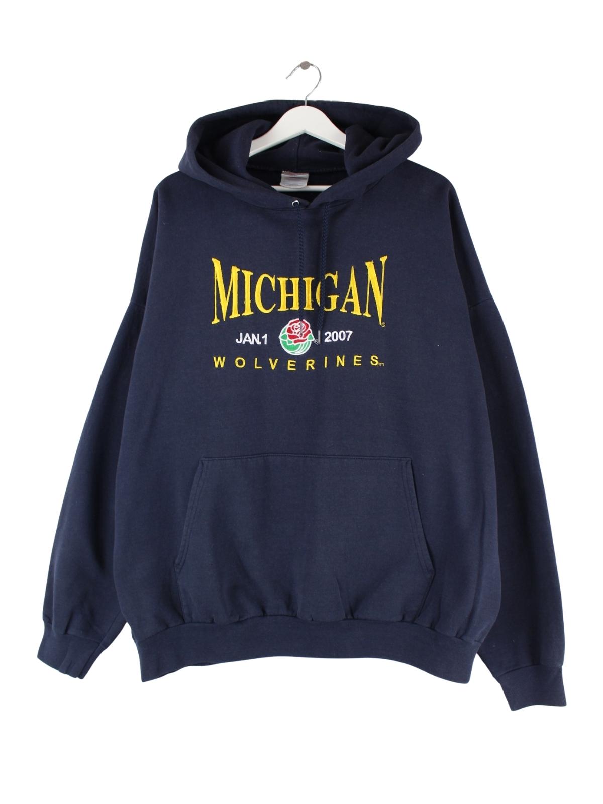 Hanes 2007 Michigan Wolverines Embroidered Hoodie Blau XL