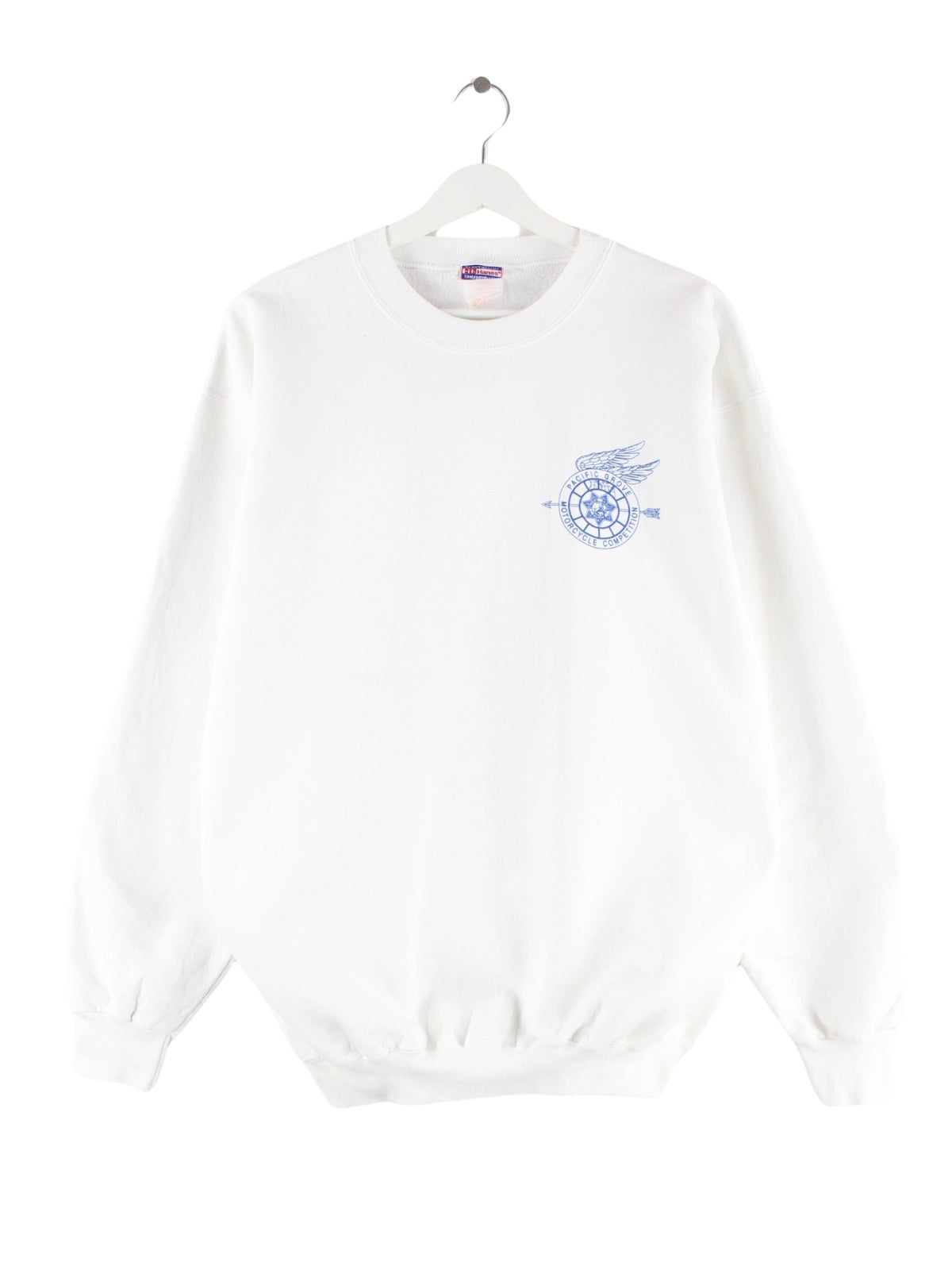 Hanes 90s Vintage Police Motorcycle Competition Print Sweater Weiß L
