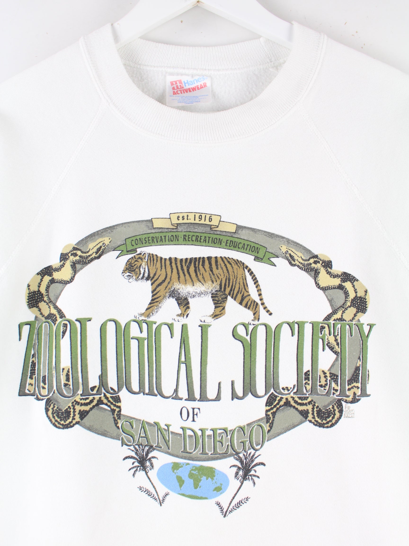 Hanes 90s Vintage San Diego Zoo Sweater Weiß M