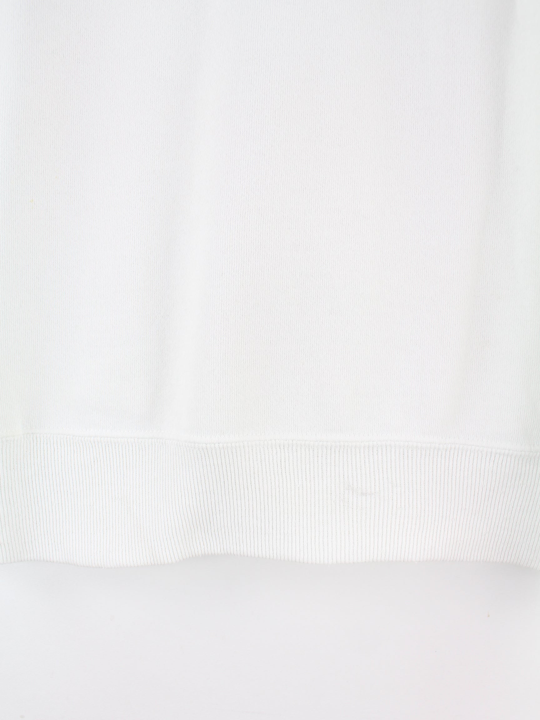 Weißer Sweater von Hanes aus den 90'ern in Größe M. Er ist aus einer Baumwollmischung gemacht und in gutem Zustand im Bestand.