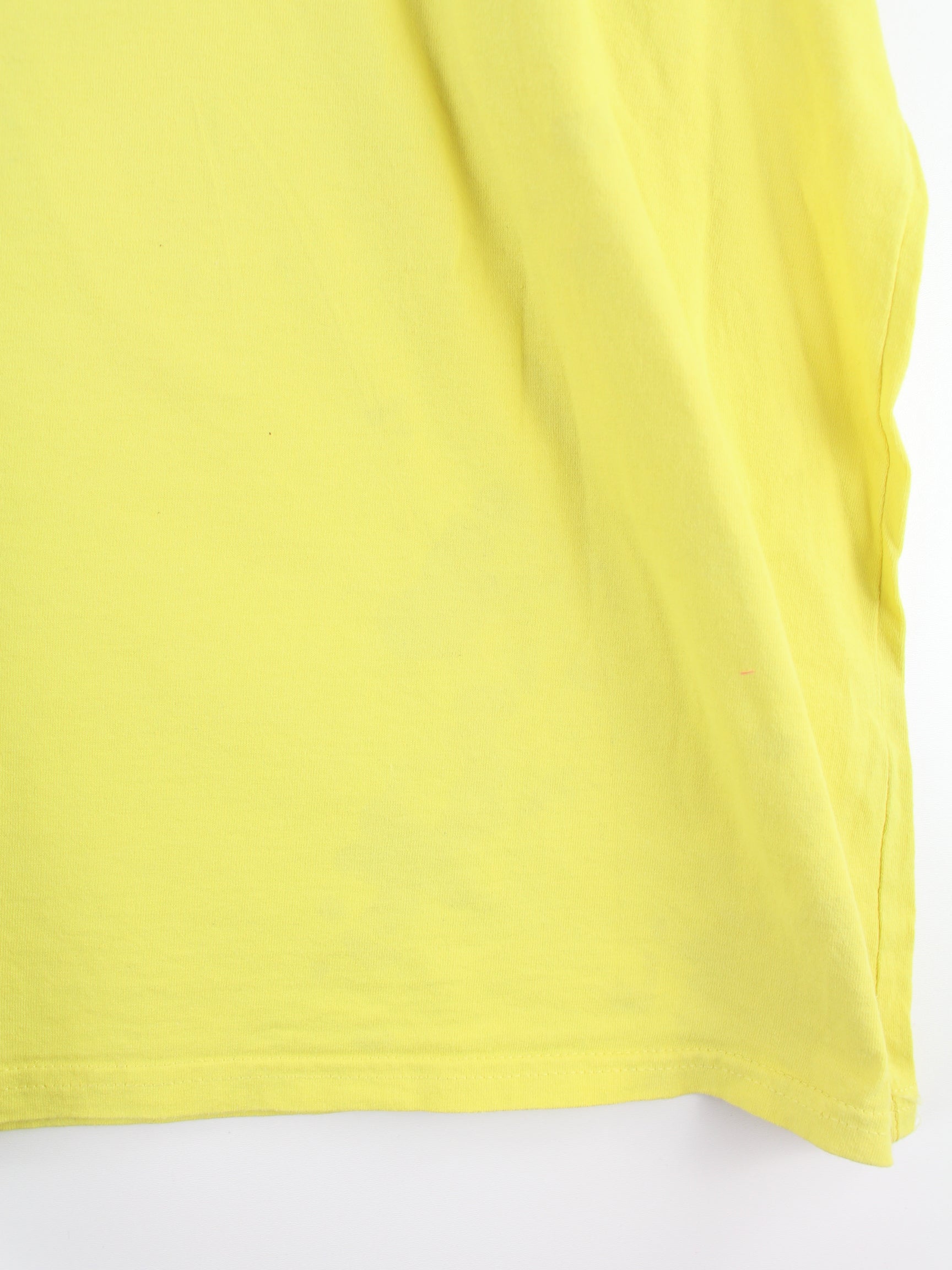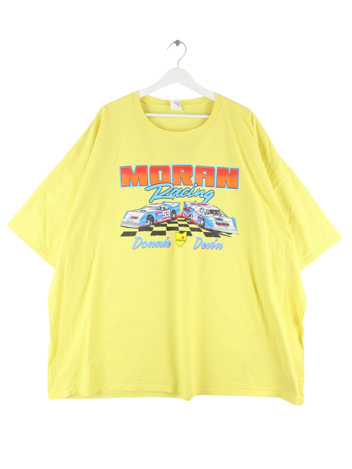 T-shirt from Hanes in size 5XL. It is made of cotton and comes in yellow. With a rare racing print.