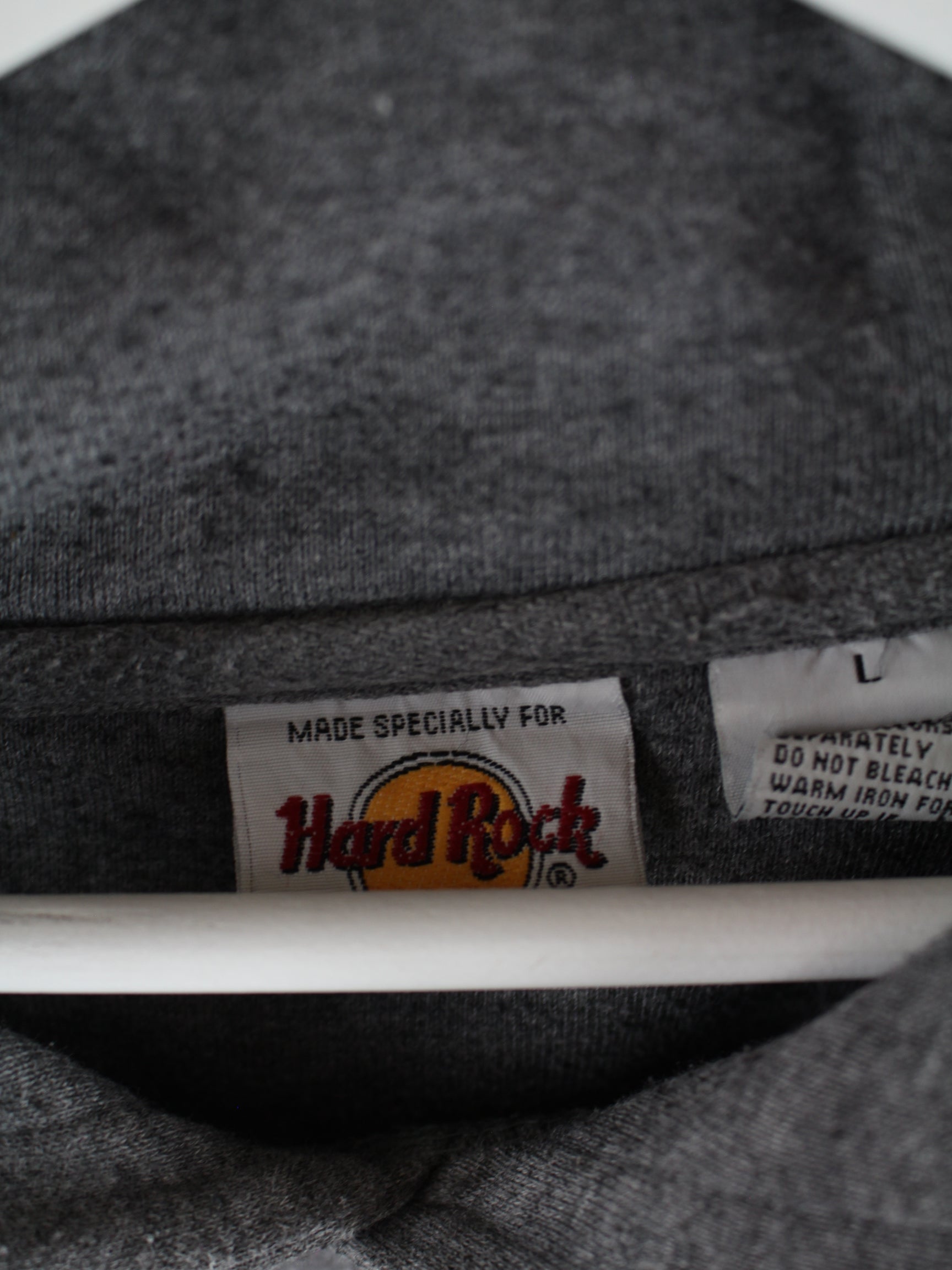 Hoodie from the brand Hard Rock Cafe with embroidery in size L. It is made from a cotton blend and is available in grey.