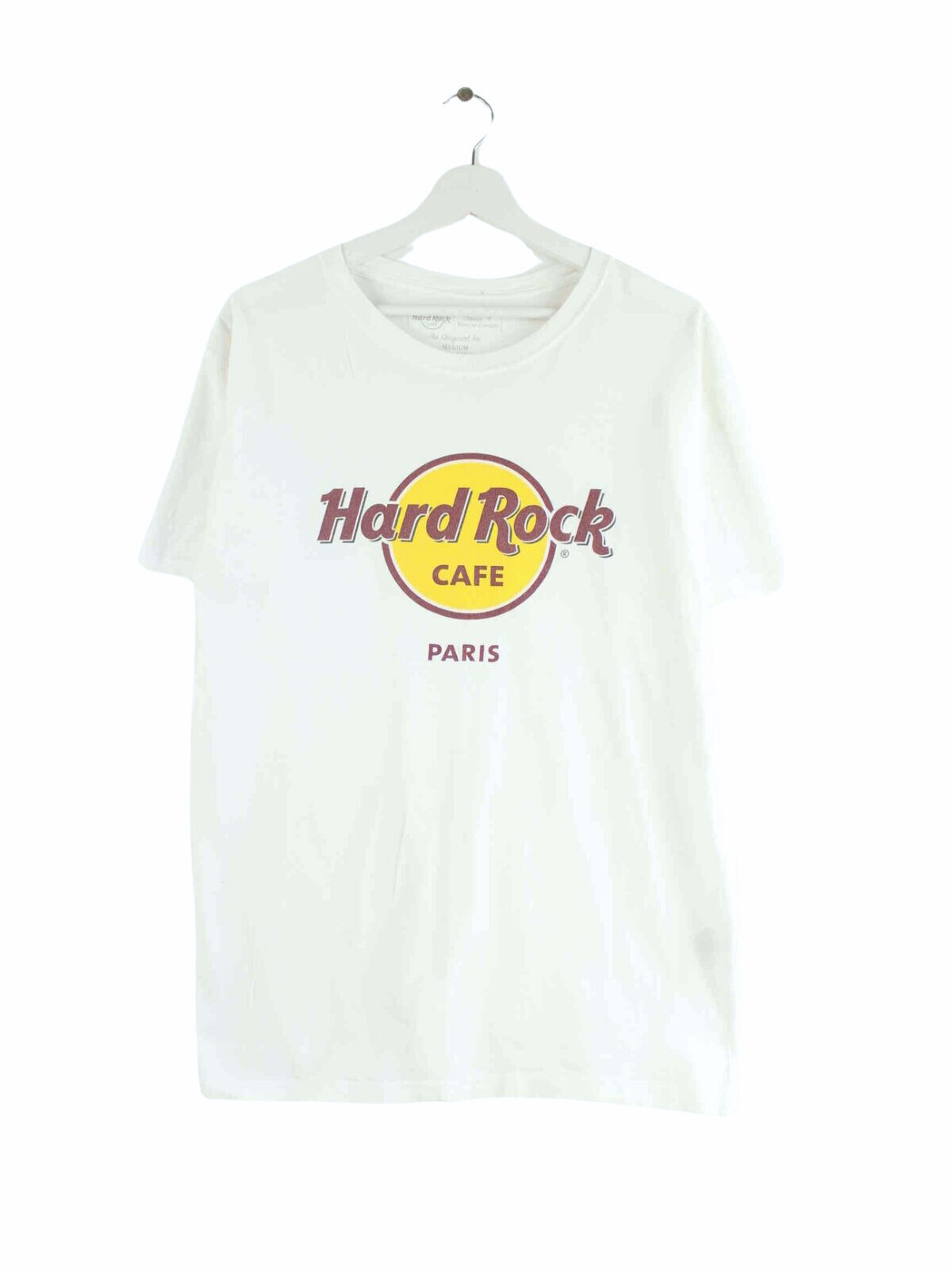 White T-shirt from the Hard Rock Cafe brand in size M. It is made of a cotton blend and is in good condition. With a rare Paris print.