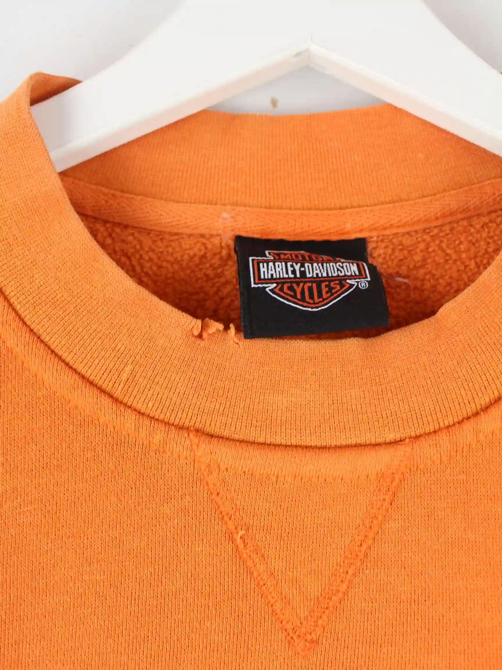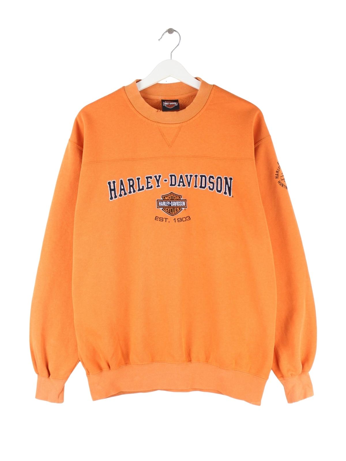 Sweater vom Label Harley Davidson mit gesticktem Logo in Größe L. Er ist aus einer Baumwollmischung produziert und in Orange im Angebot.