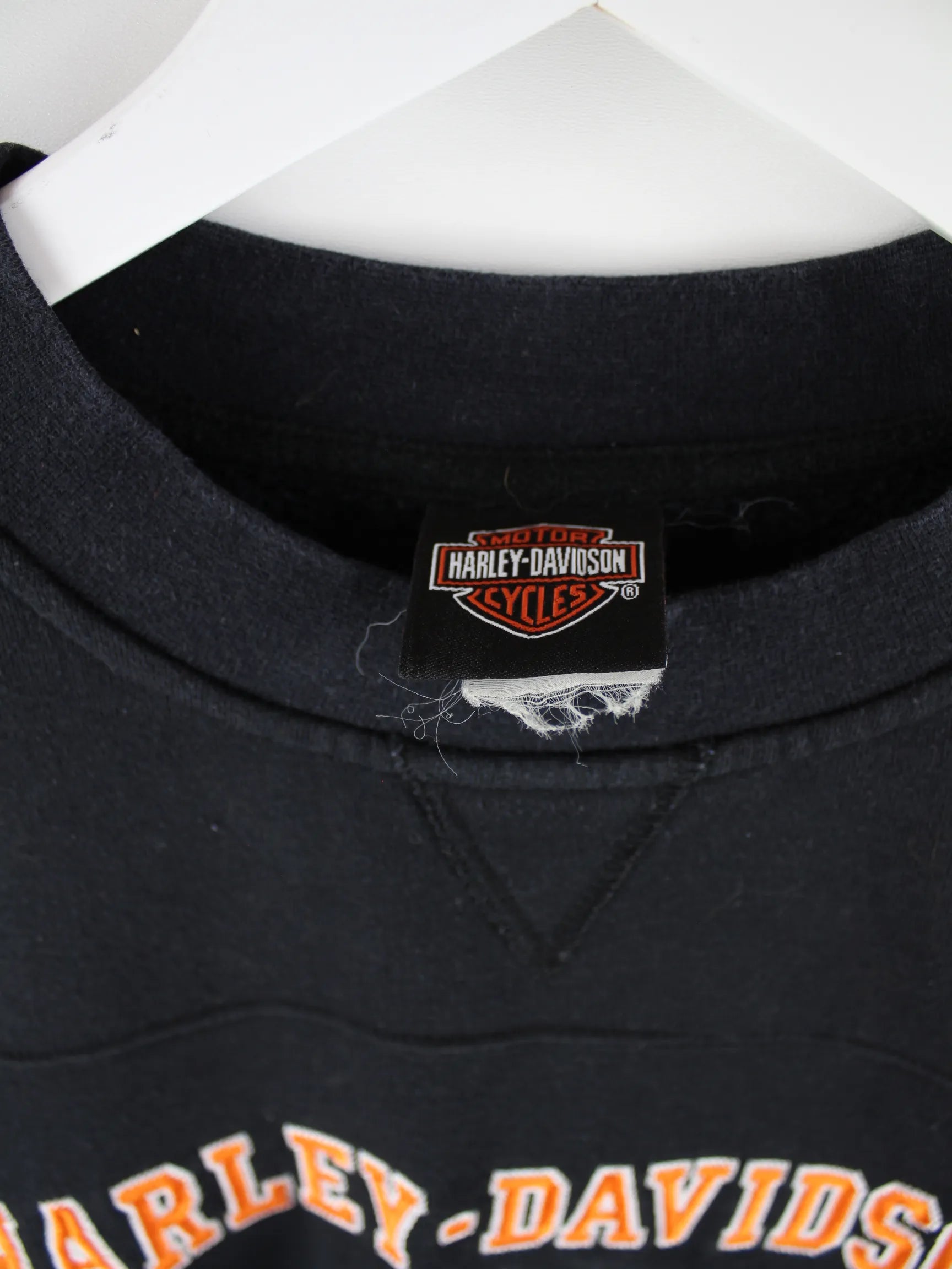 Schwarzer Sweater mit Stick der Brand Harley Davidson in Größe XL. Er ist aus einer Baumwollmischung gemacht und in sehr gutem Zustand im Angebot.