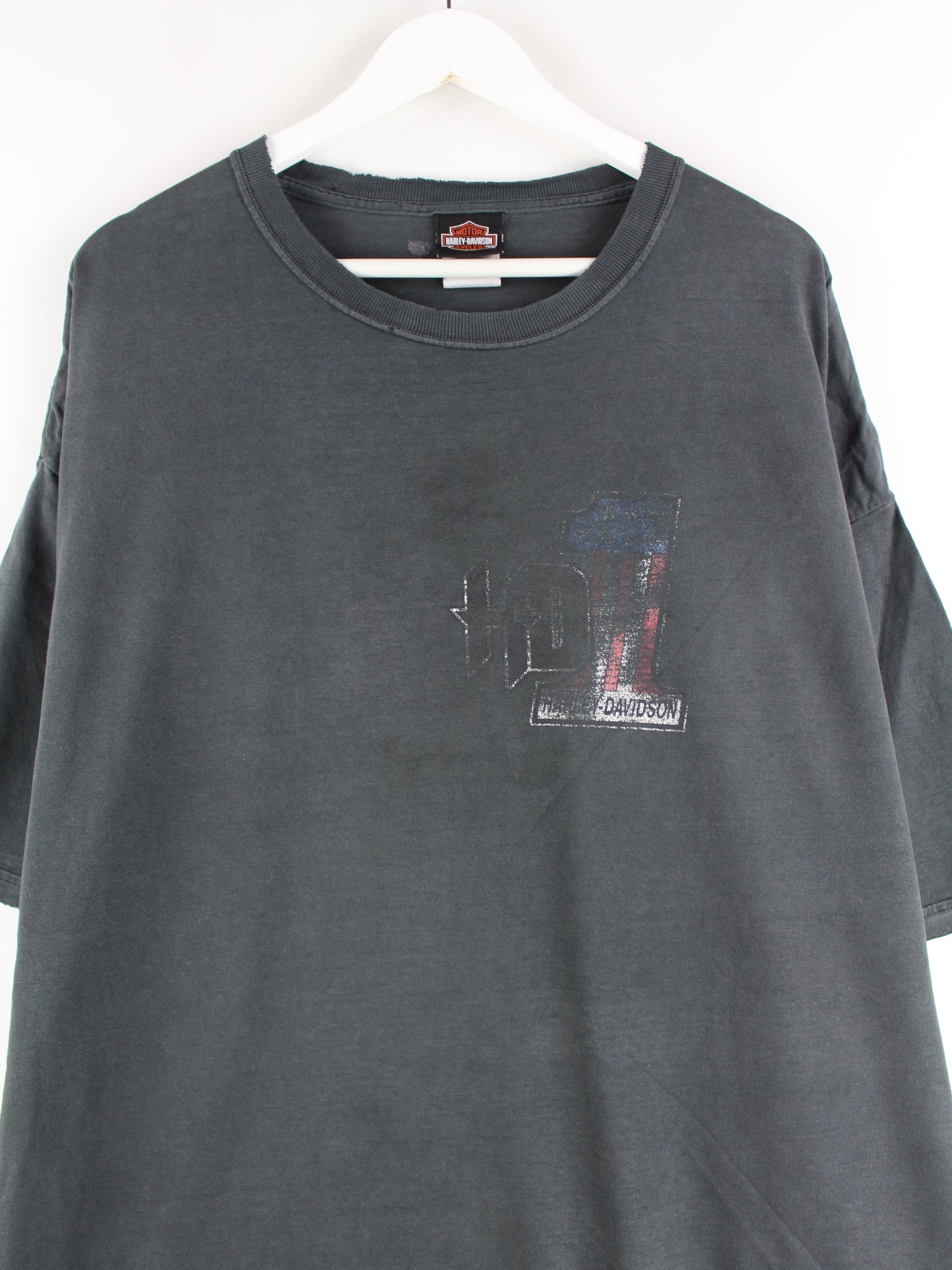 T-shirt from Harley Davidson in size 4XL from the early 2000s. It is made of cotton and is available in grey. With a chic y2k print.