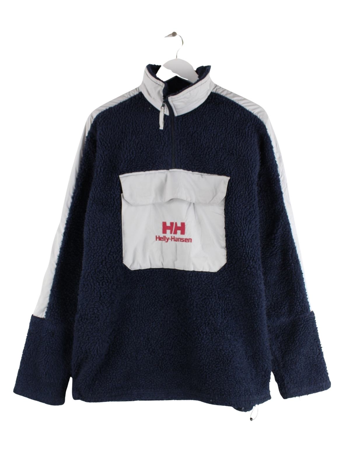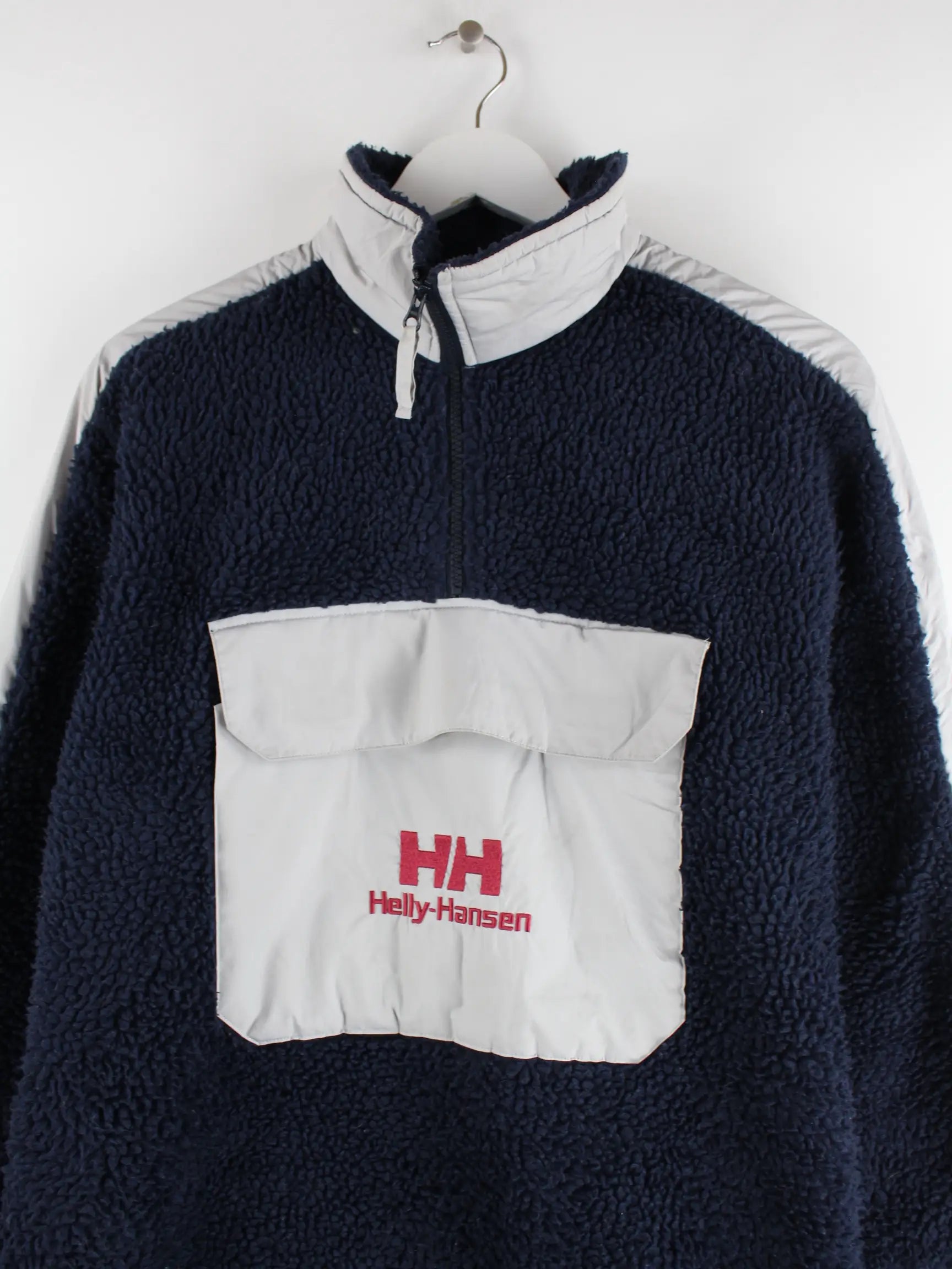 Blaue Leichte Jacke mit halbem Reißverschluß des Labels Helly Hansen in Größe XL. Sie ist aus kuscheligem Fleece gemacht und in gutem Zustand vorrätig.