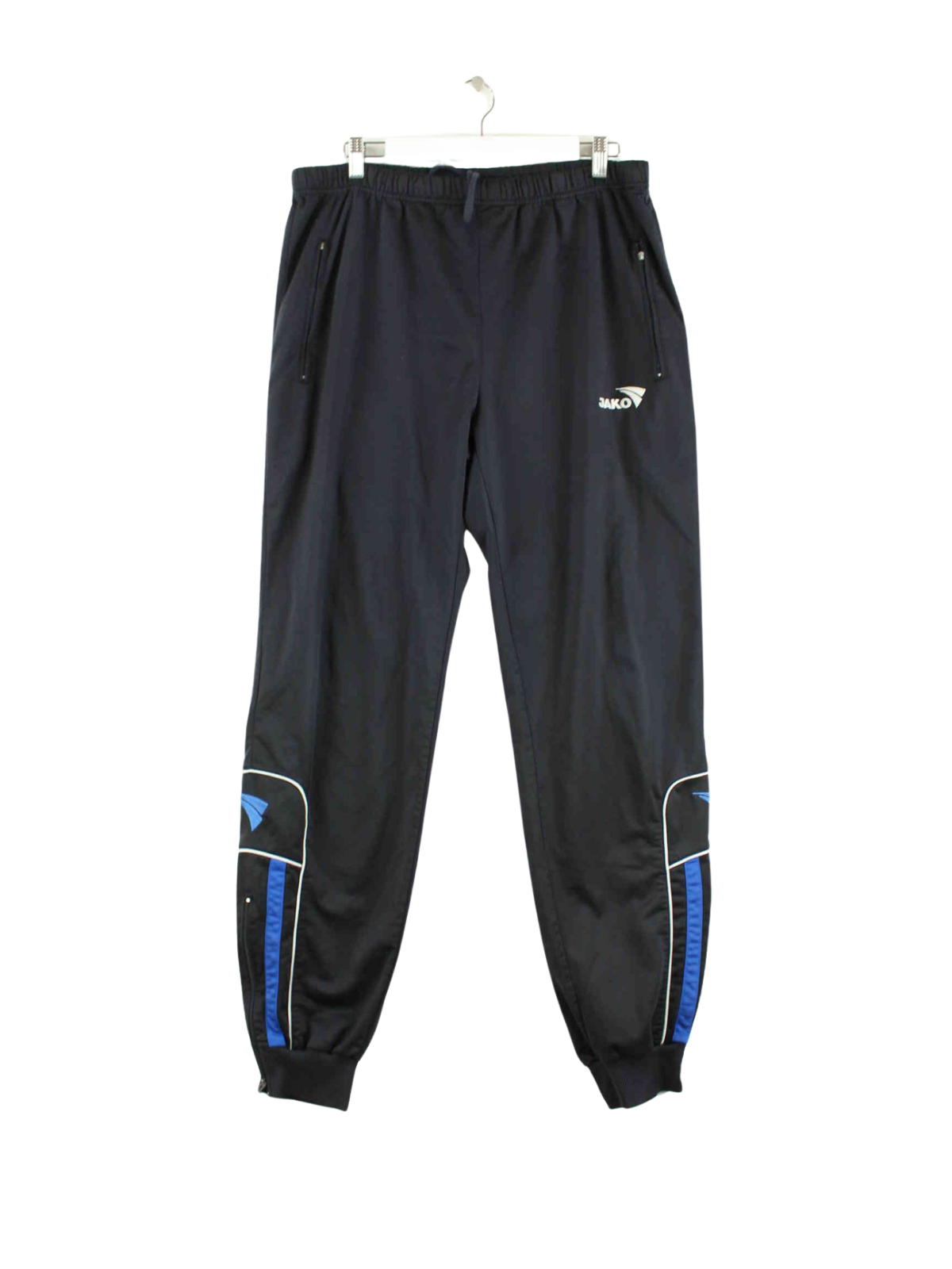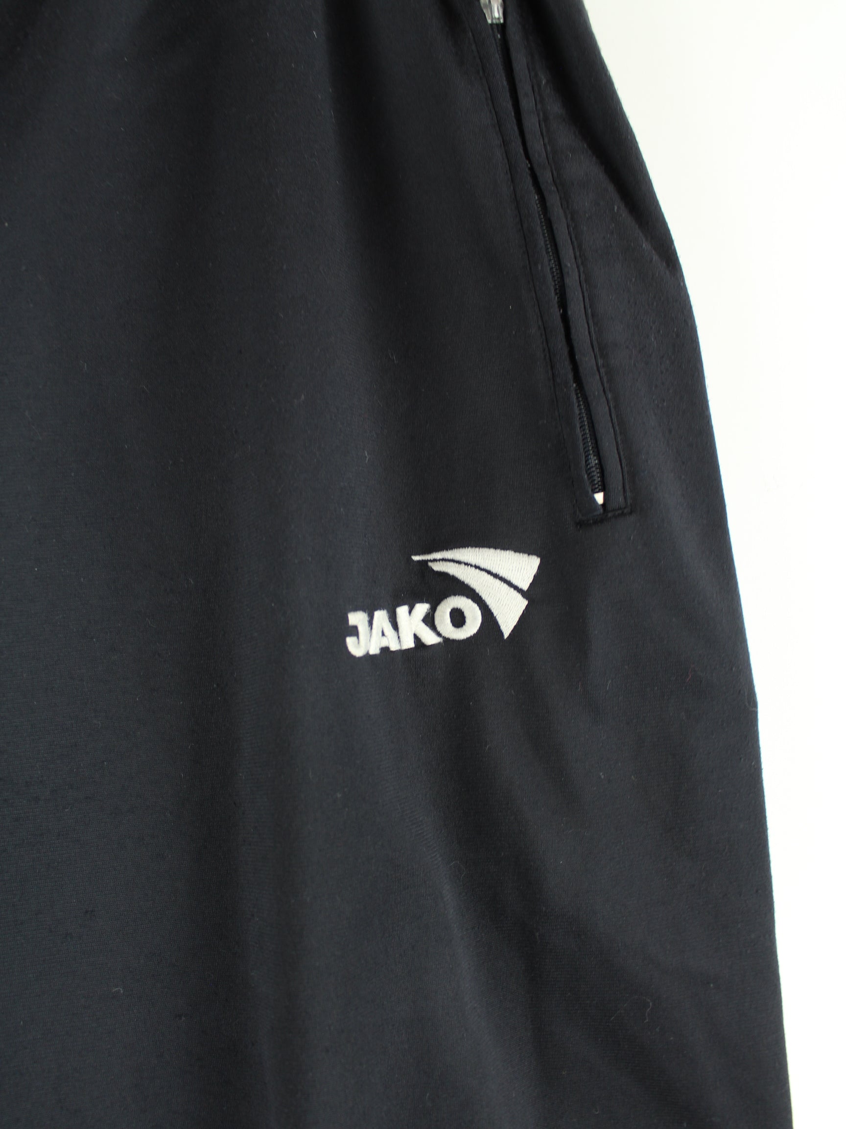 Black track pants with embroidered logo from Jako from the early 2000s in size L. They are made of synthetic material and are in very good condition.