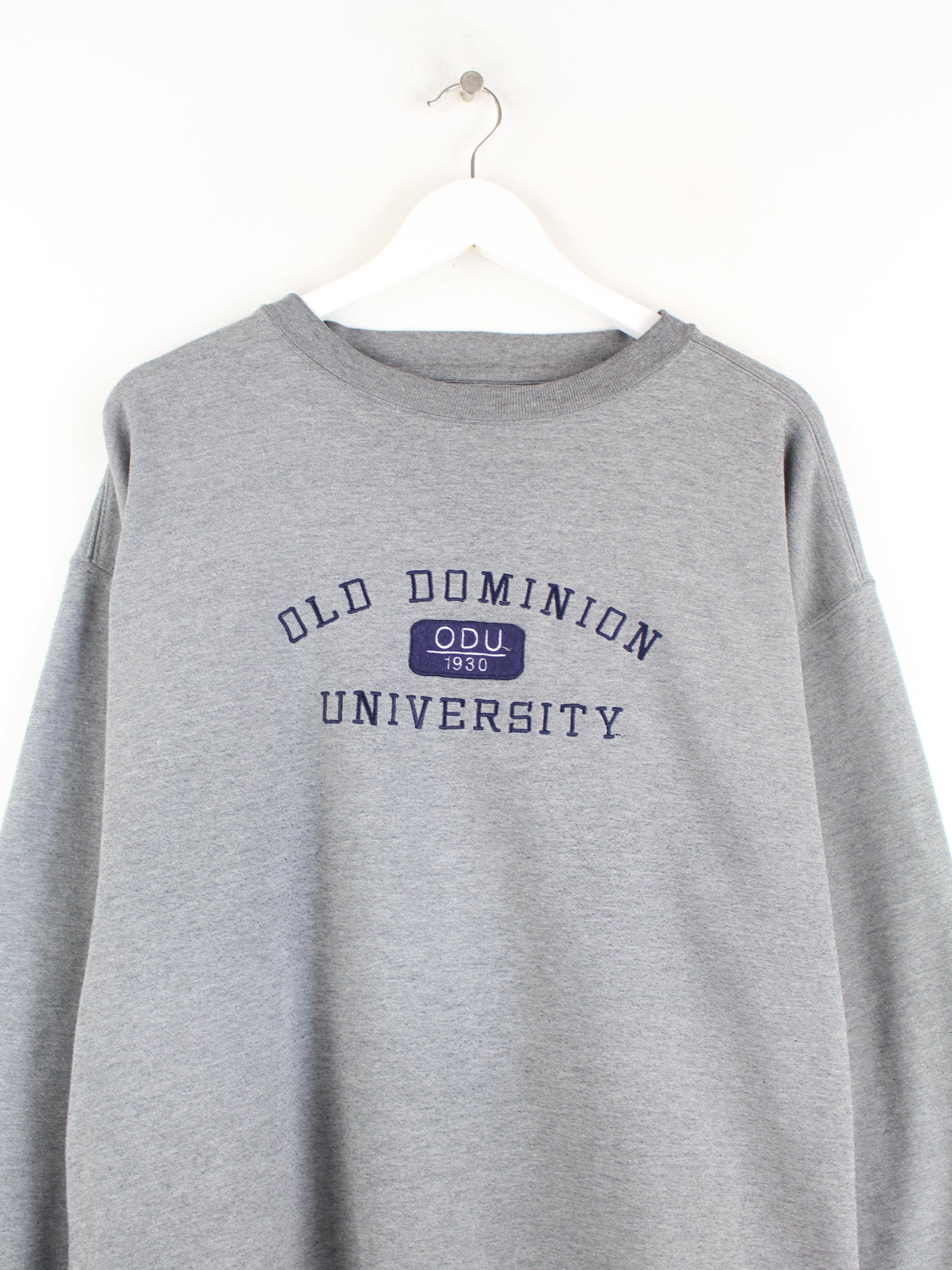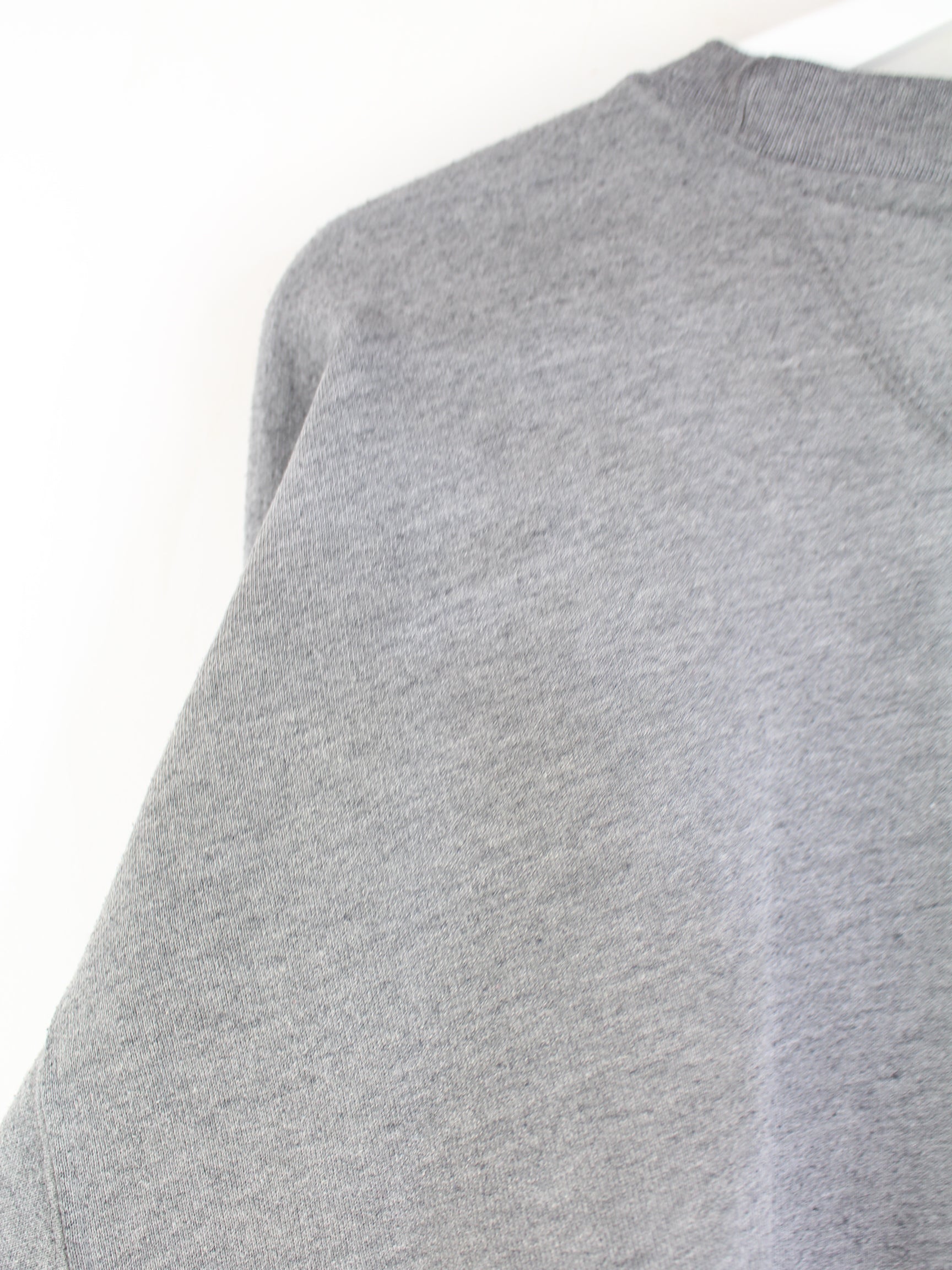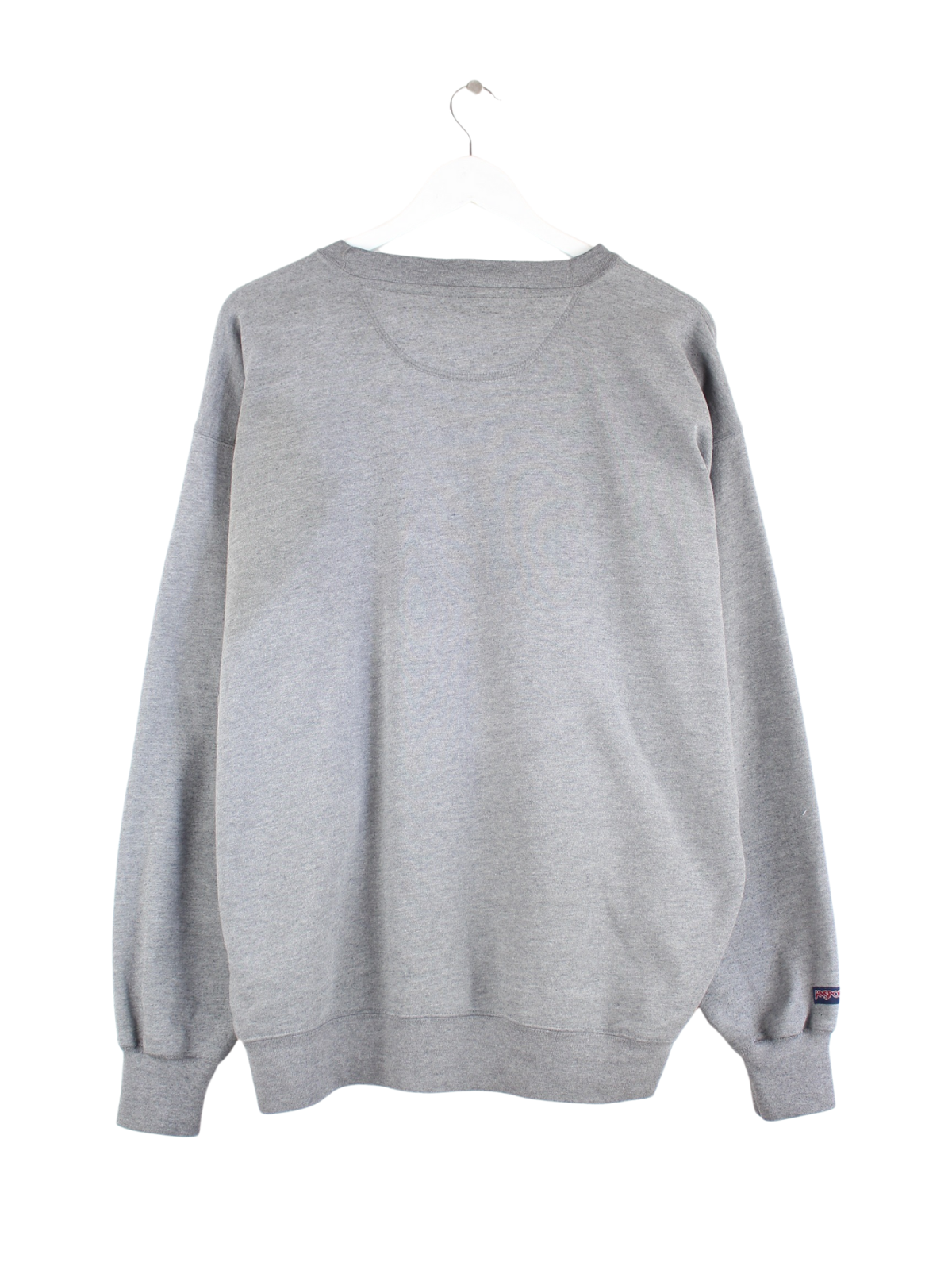 Grey sweater with embroidered motifs from the Jansport brand in size L. It is made of a cotton blend and is in stock in good condition.