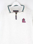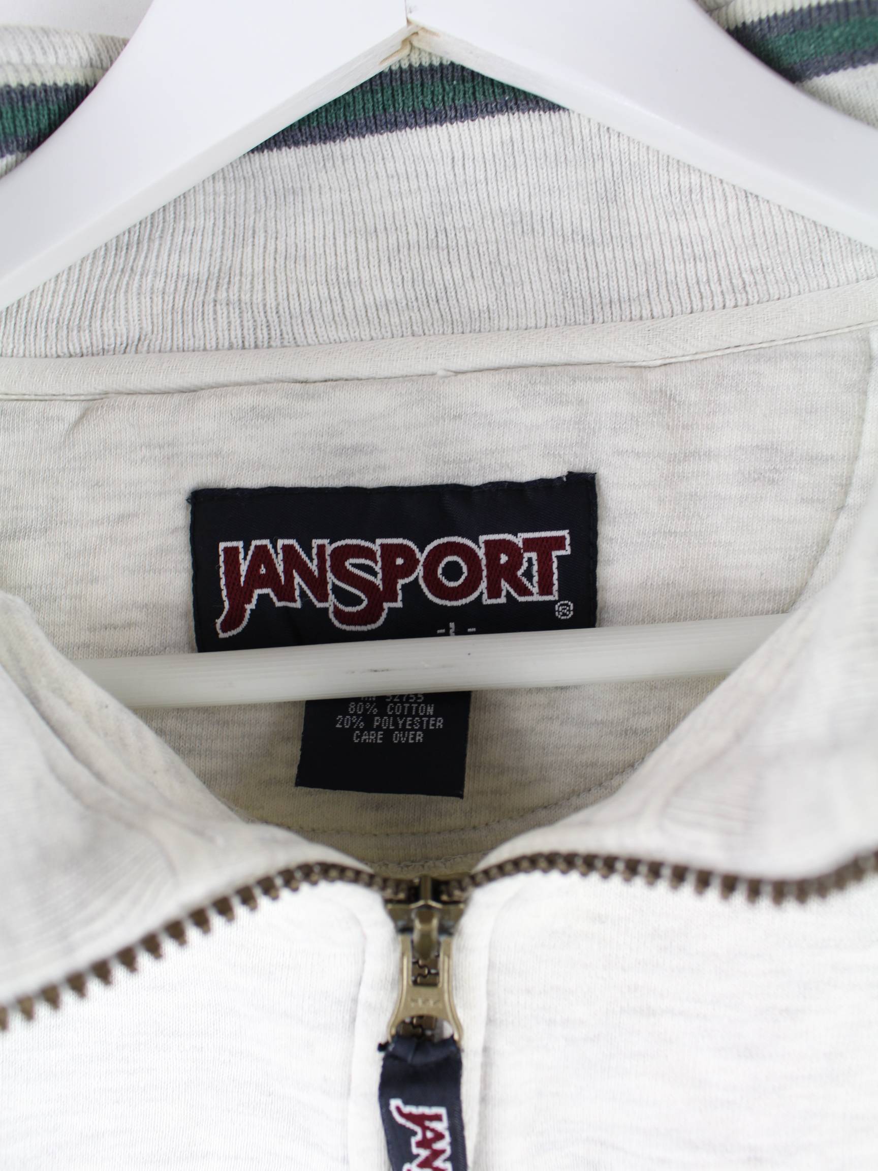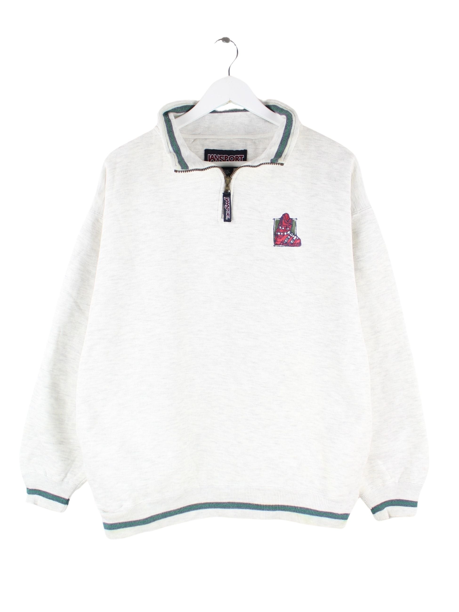Sweater von Jansport mit Stick und halbem Reißverschluß in Größe L aus den 90'ern. Er ist aus einer Baumwollmischung angefertigt und in Grau im Angebot.