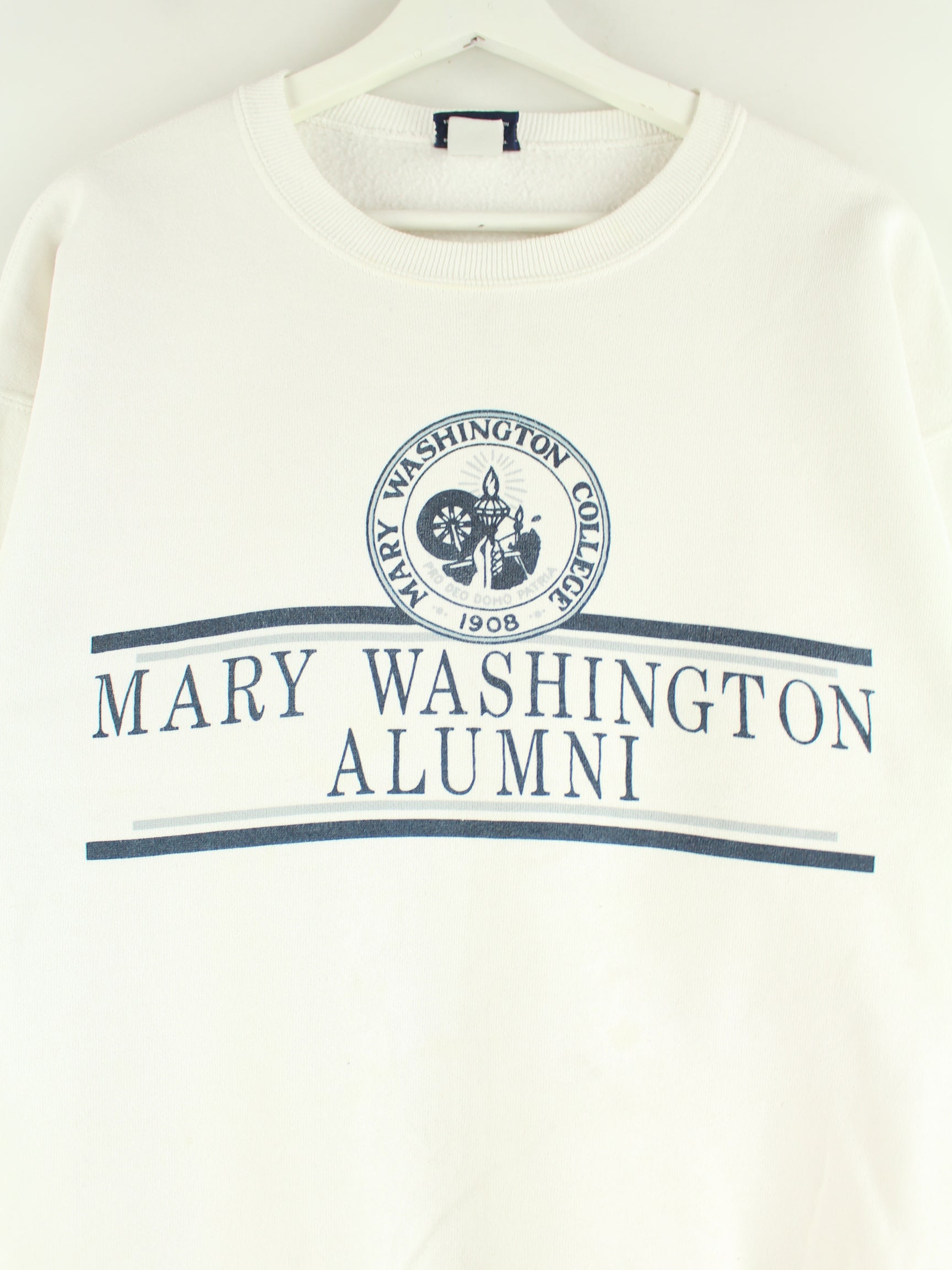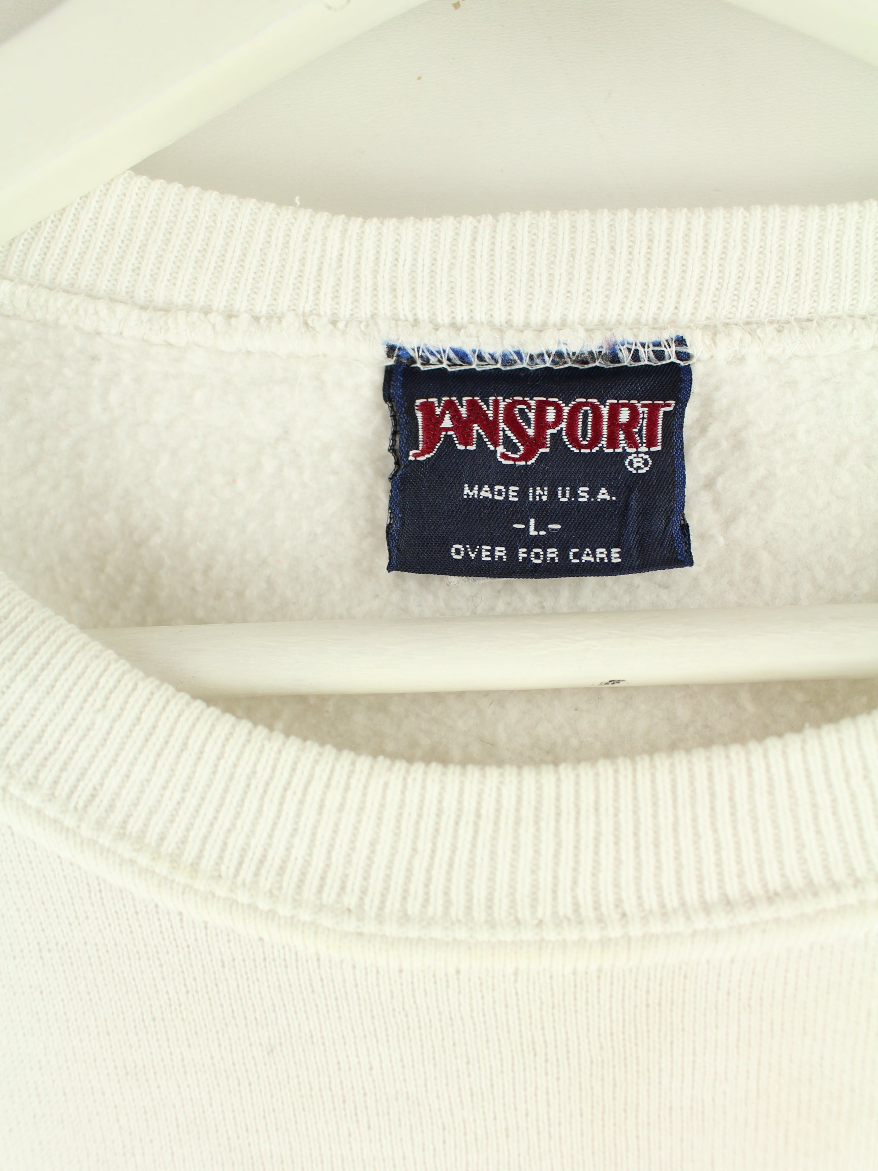 White sweater from Jansport from the 90's in size L. It is made from a cotton blend. We would describe the condition as 'fine' (see pictures). With rare Washington print.