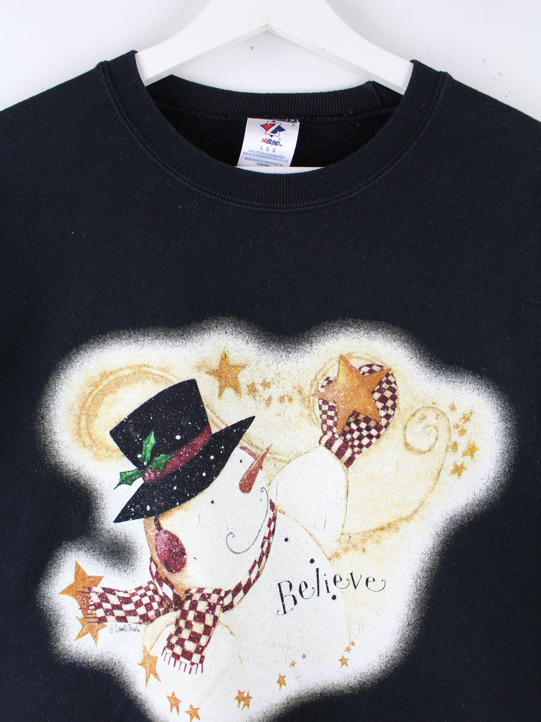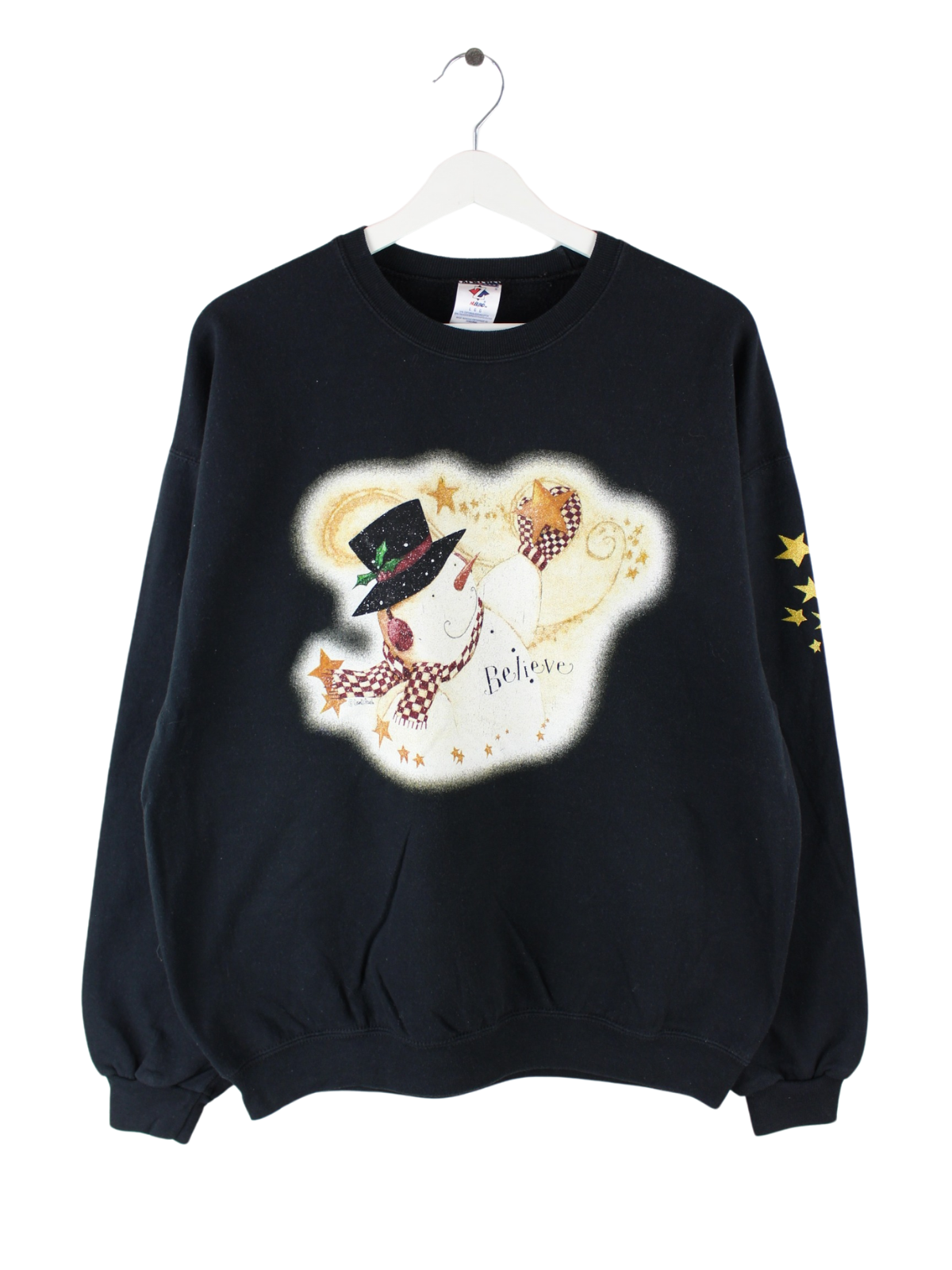 Jerzees 90s Vintage Christmas Print Sweater Schwarz L