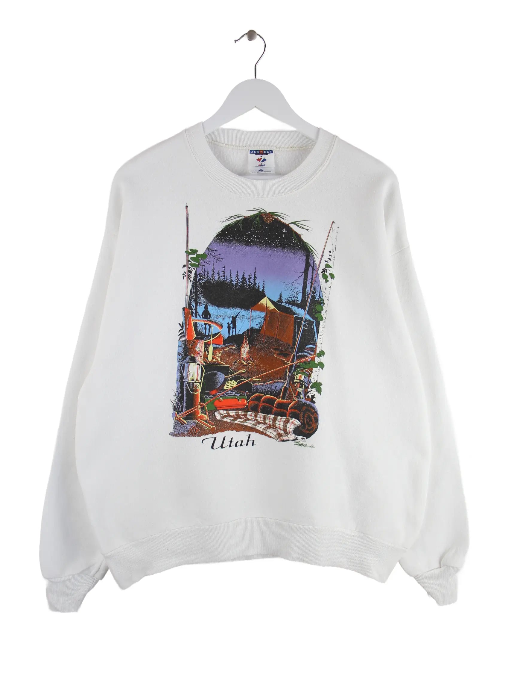 Jerzees 90s Vintage Utah Print Sweater Weiß L