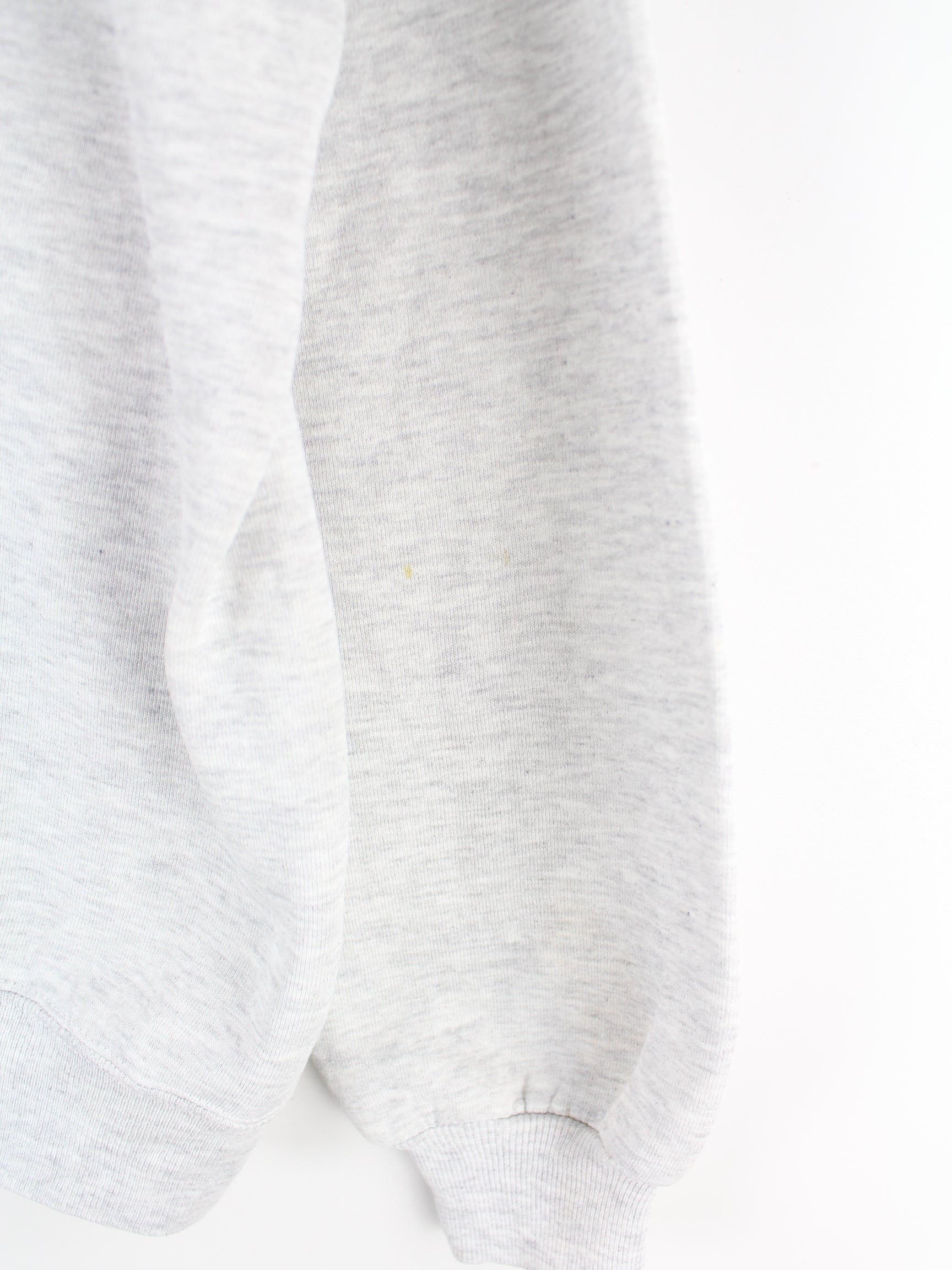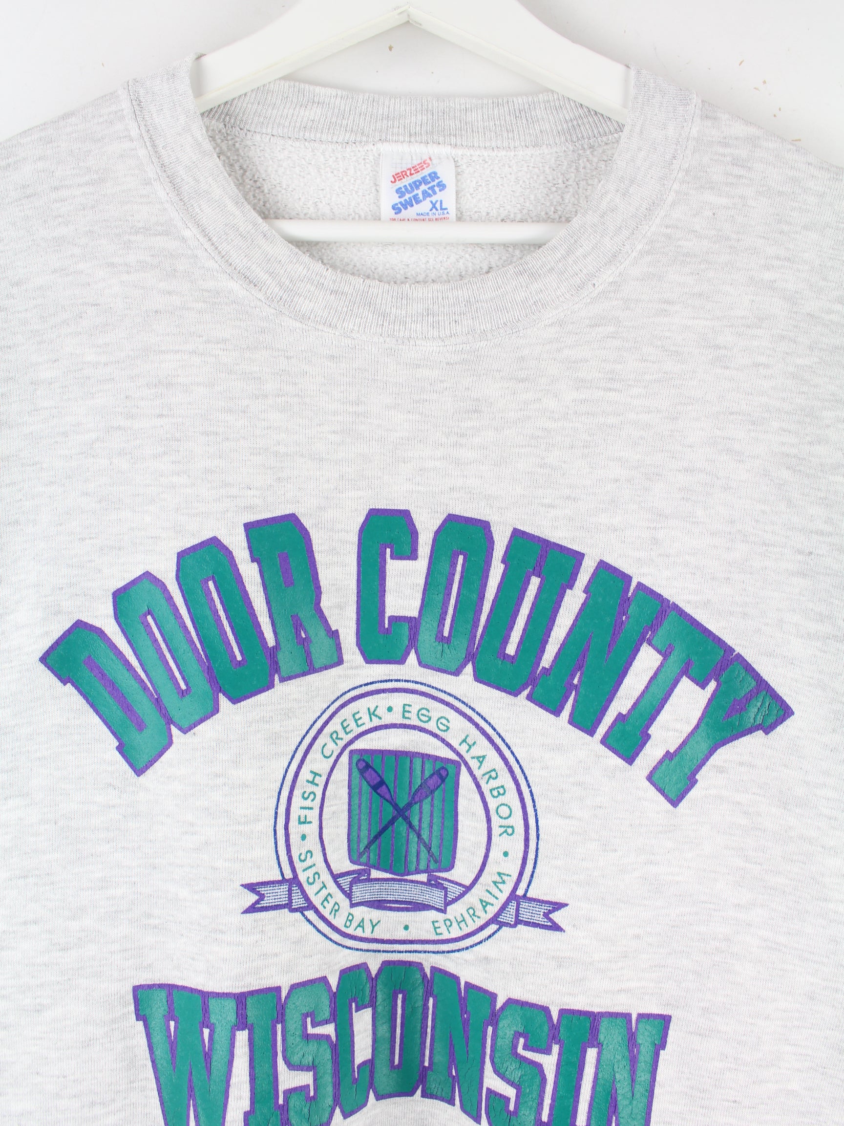 Sweater des Labels Jerzees in Größe XL aus den 90'ern. Er ist aus einer Baumwollmischung gemacht und in Grau im Angebot. Mit tollem Wisconsin Print.