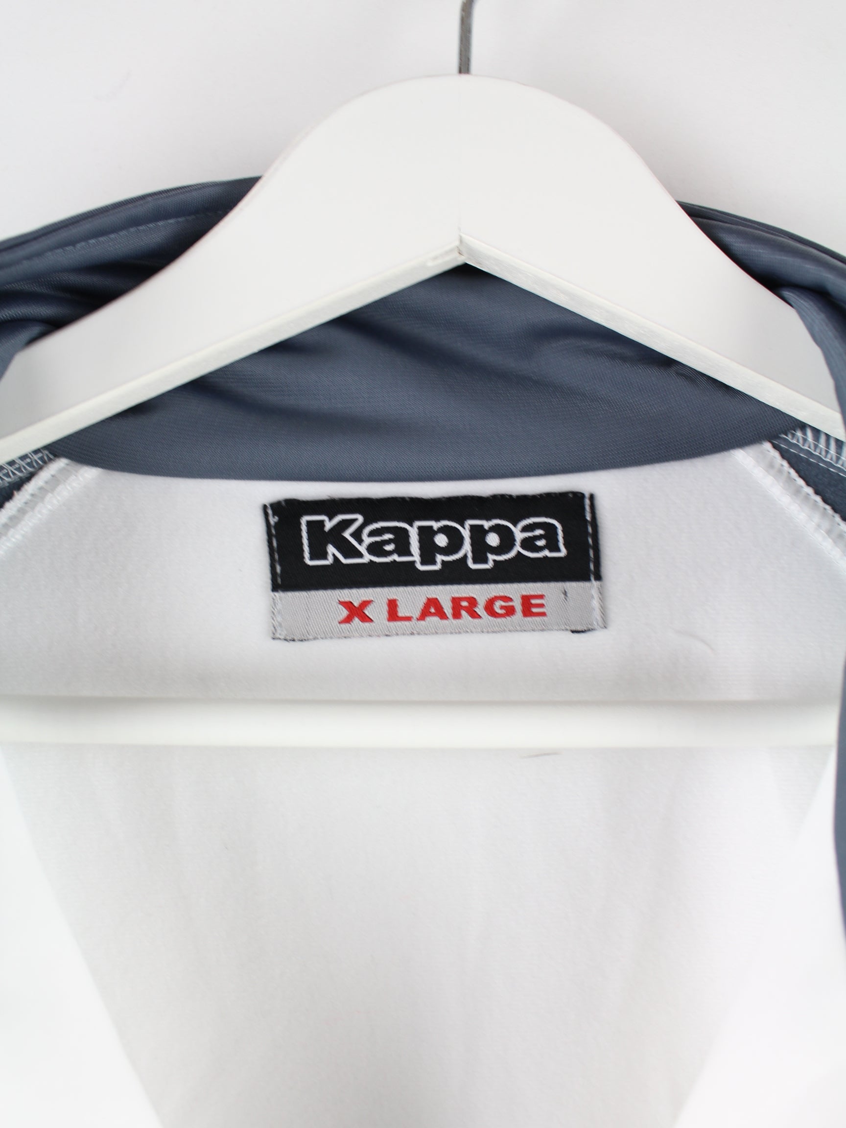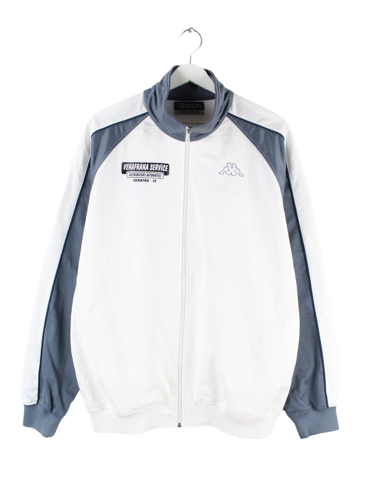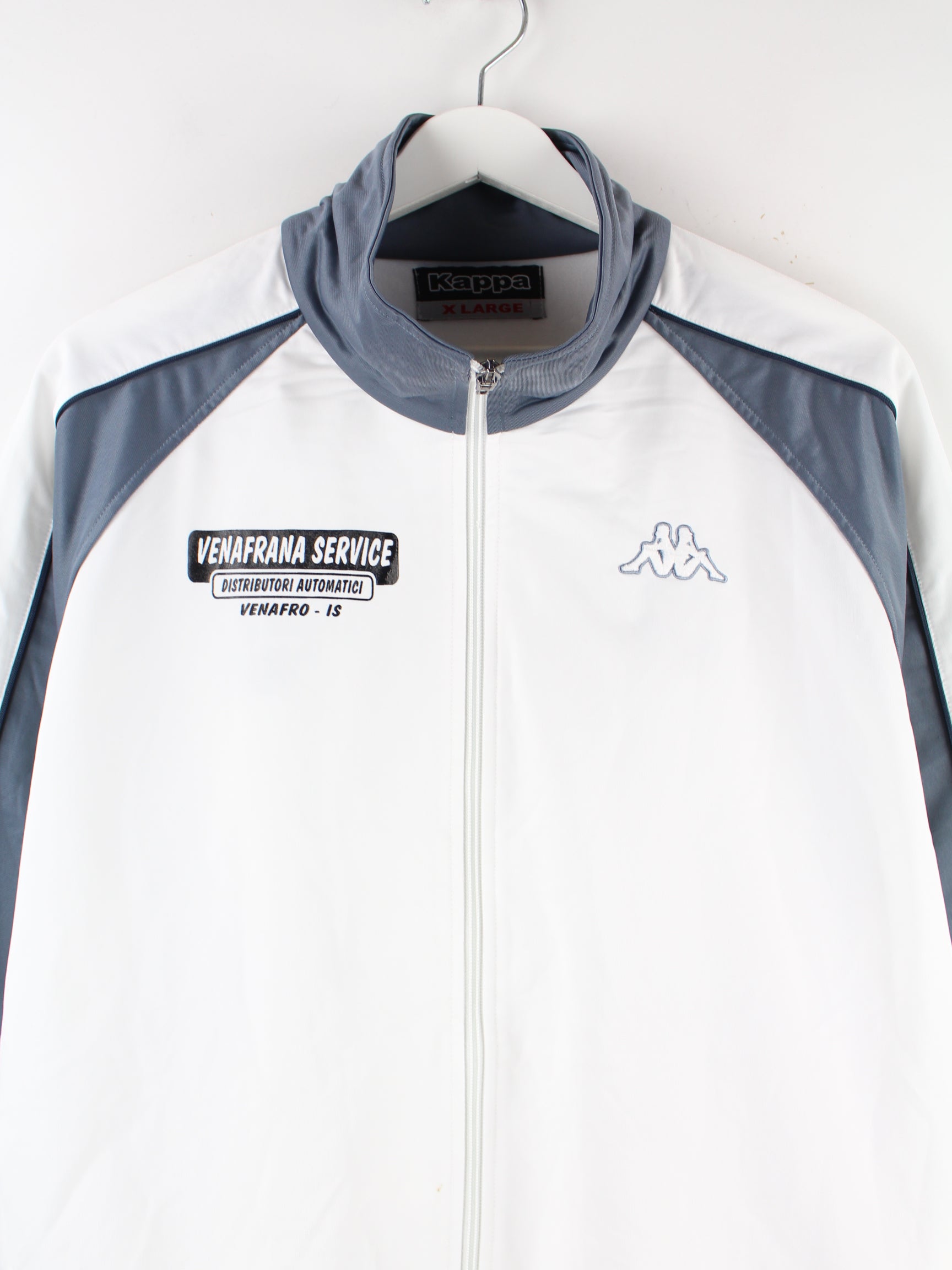 Trainingsjacke aus dem Hause Kappa in Größe XL. Sie ist aus Synthetik gefertigt und in Weiß auf Lager. Mit schickem 00s Print.