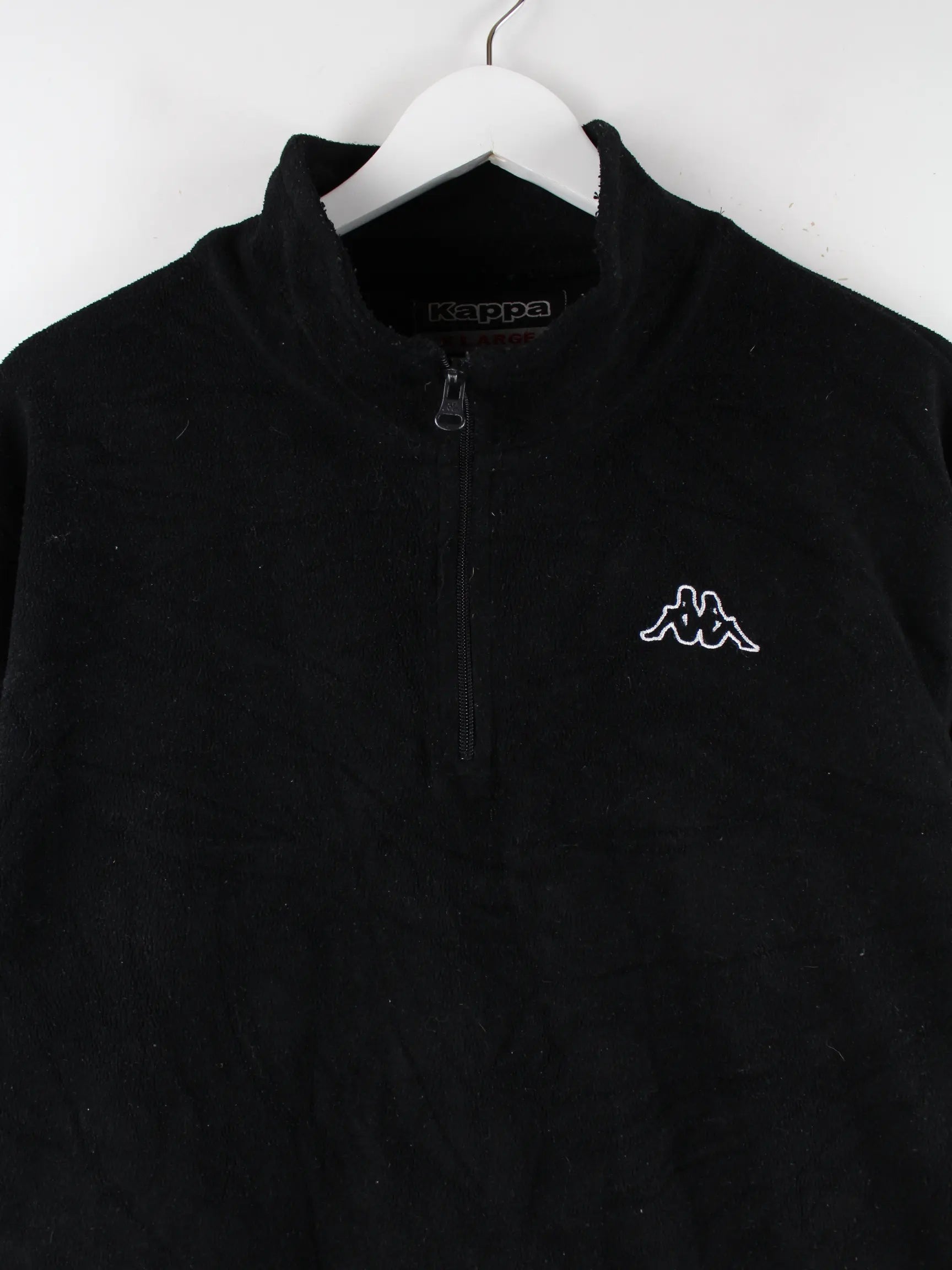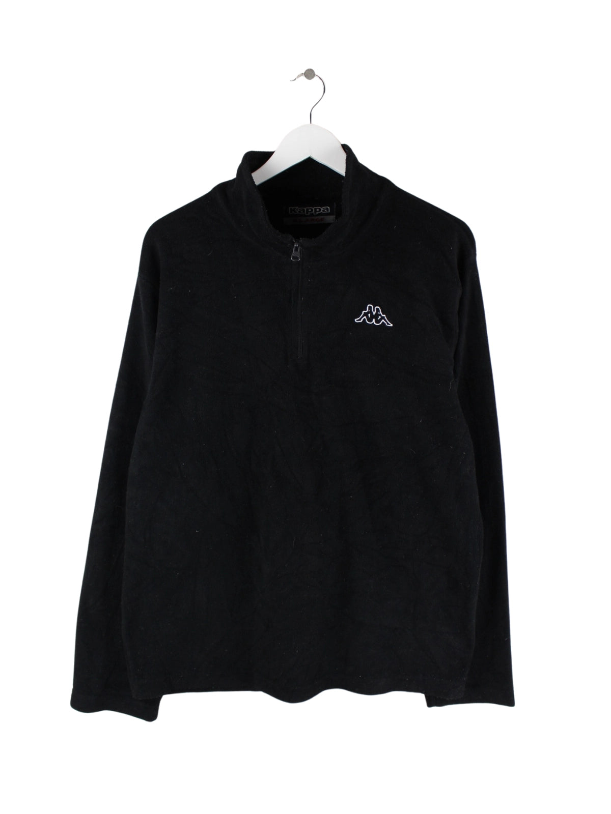 Sweater aus dem Hause Kappa mit halbem Reißverschluß in Größe XL. Er ist aus behaglichem Fleece und in Schwarz vorrätig.