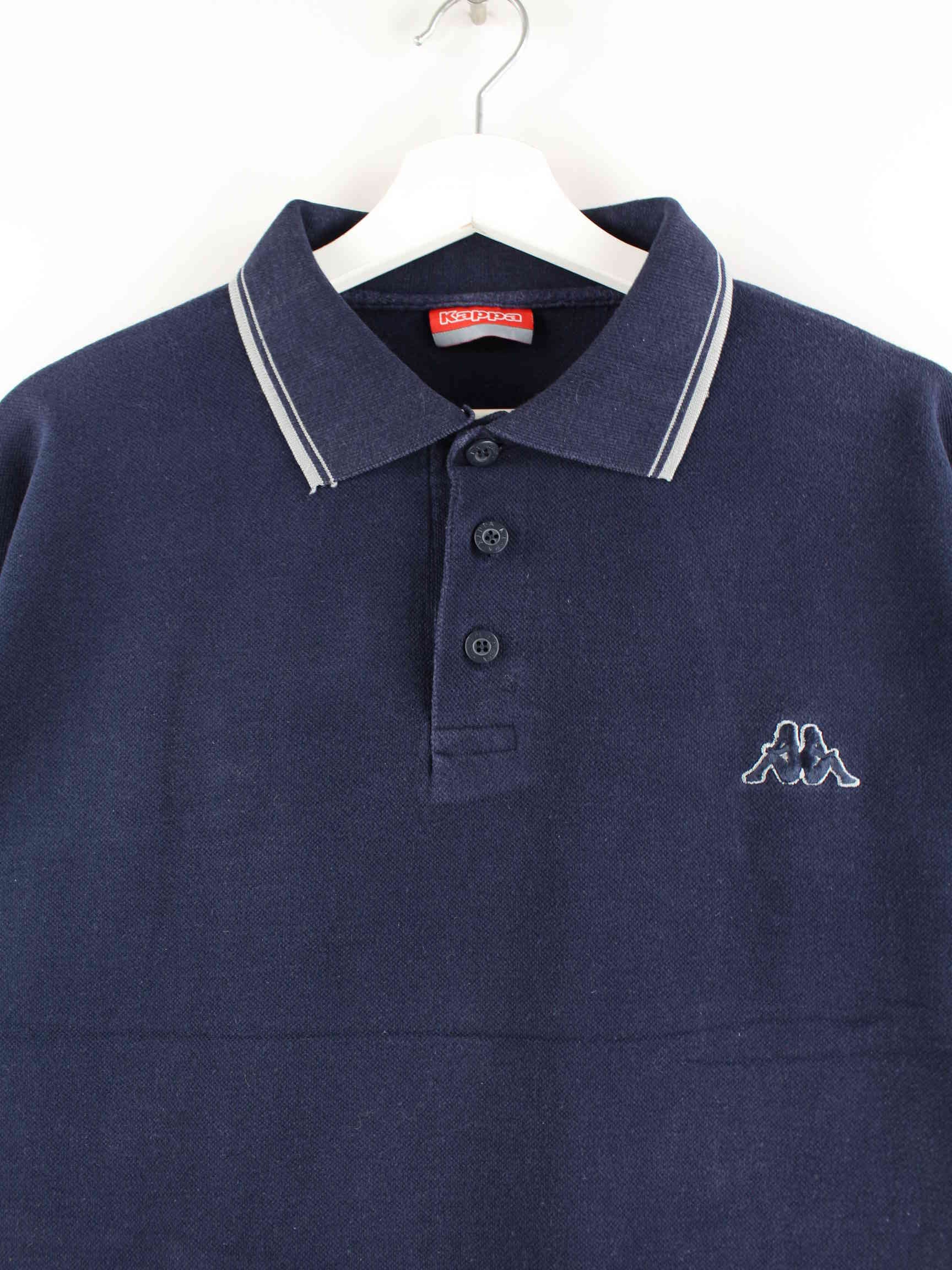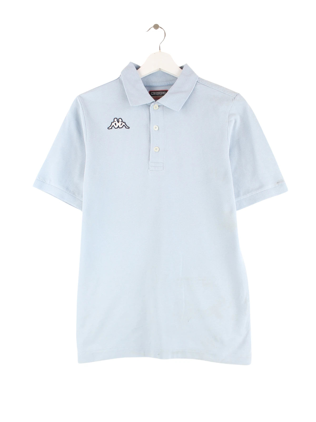 Polo shirt from the Kappa label with embroidered patterns in size S from the early 2000s. It is made from cotton and is stocked in blue.