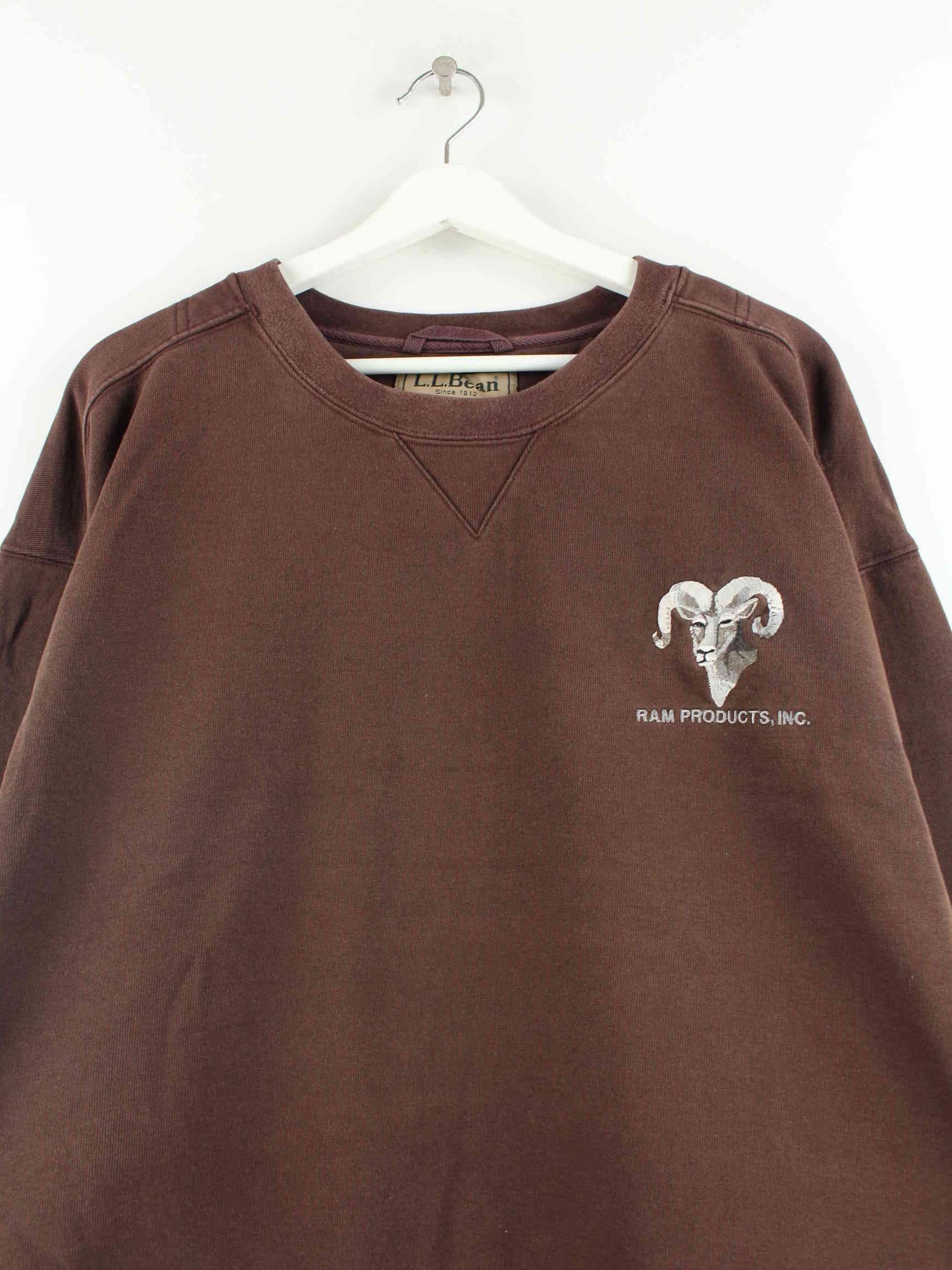 LL Bean Embroidered Heavy Cotton Sweater Brown XXL