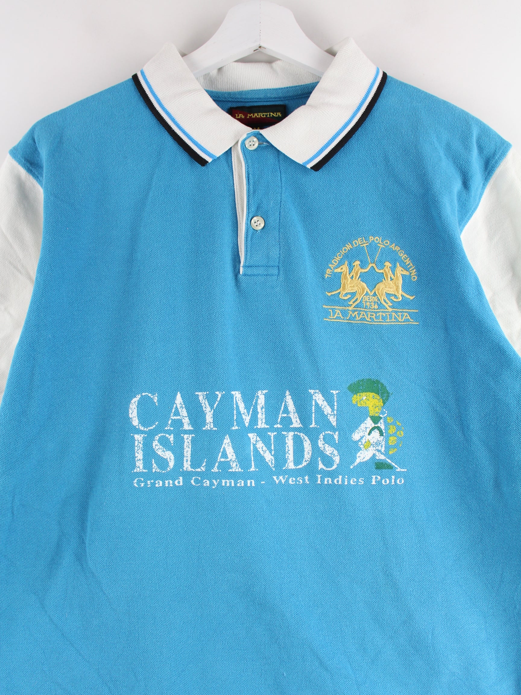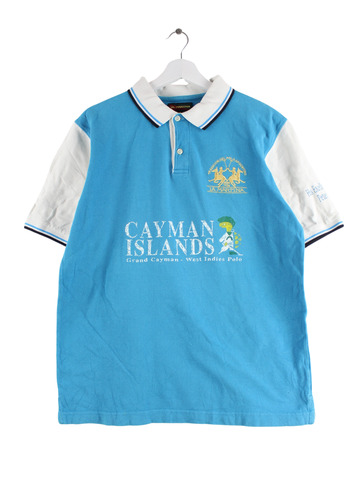 La Martina 90s Vintage Cayman Print Polo Blue M