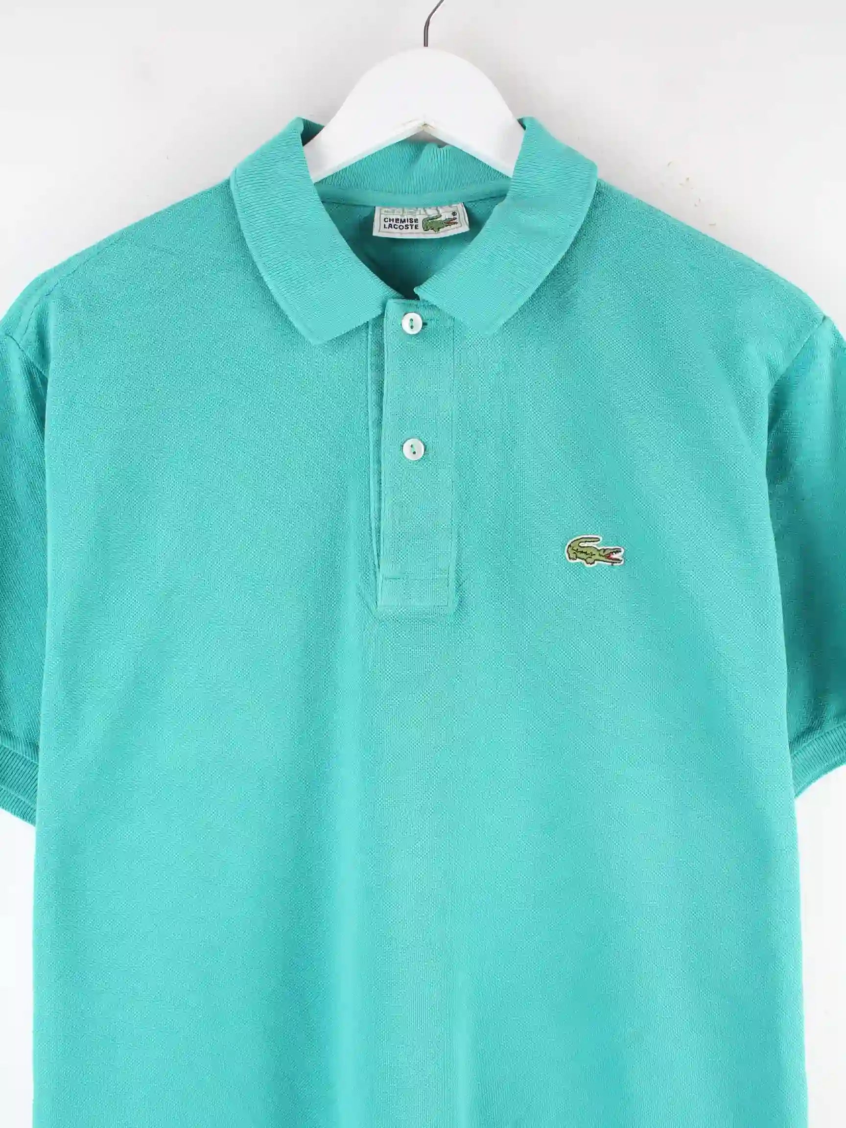 Grünes Poloshirt vom Brand Lacoste aus den 90'ern in Größe XXL. Es ist aus Baumwolle gemacht und in gutem Zustand bei uns zu bekommen.