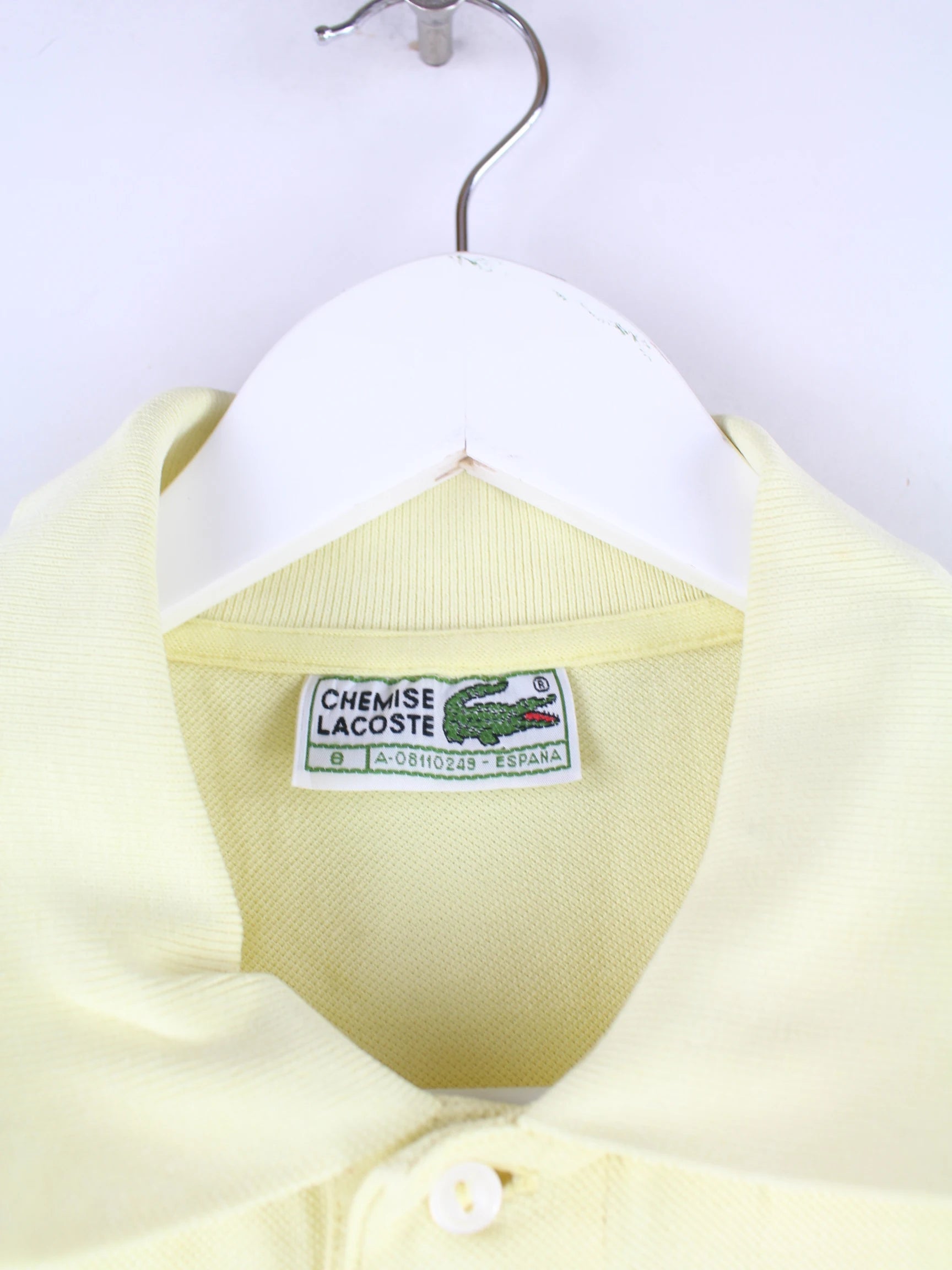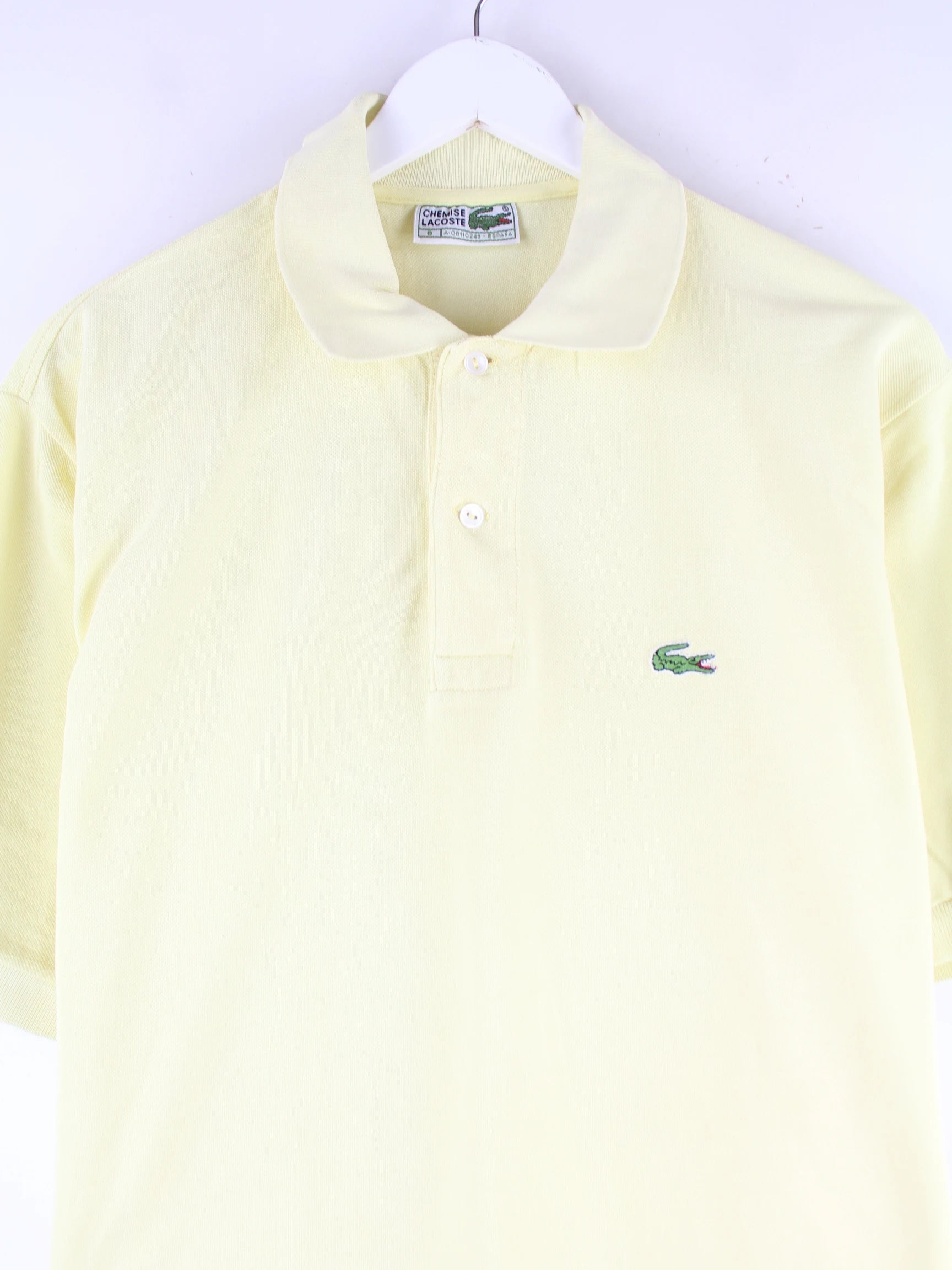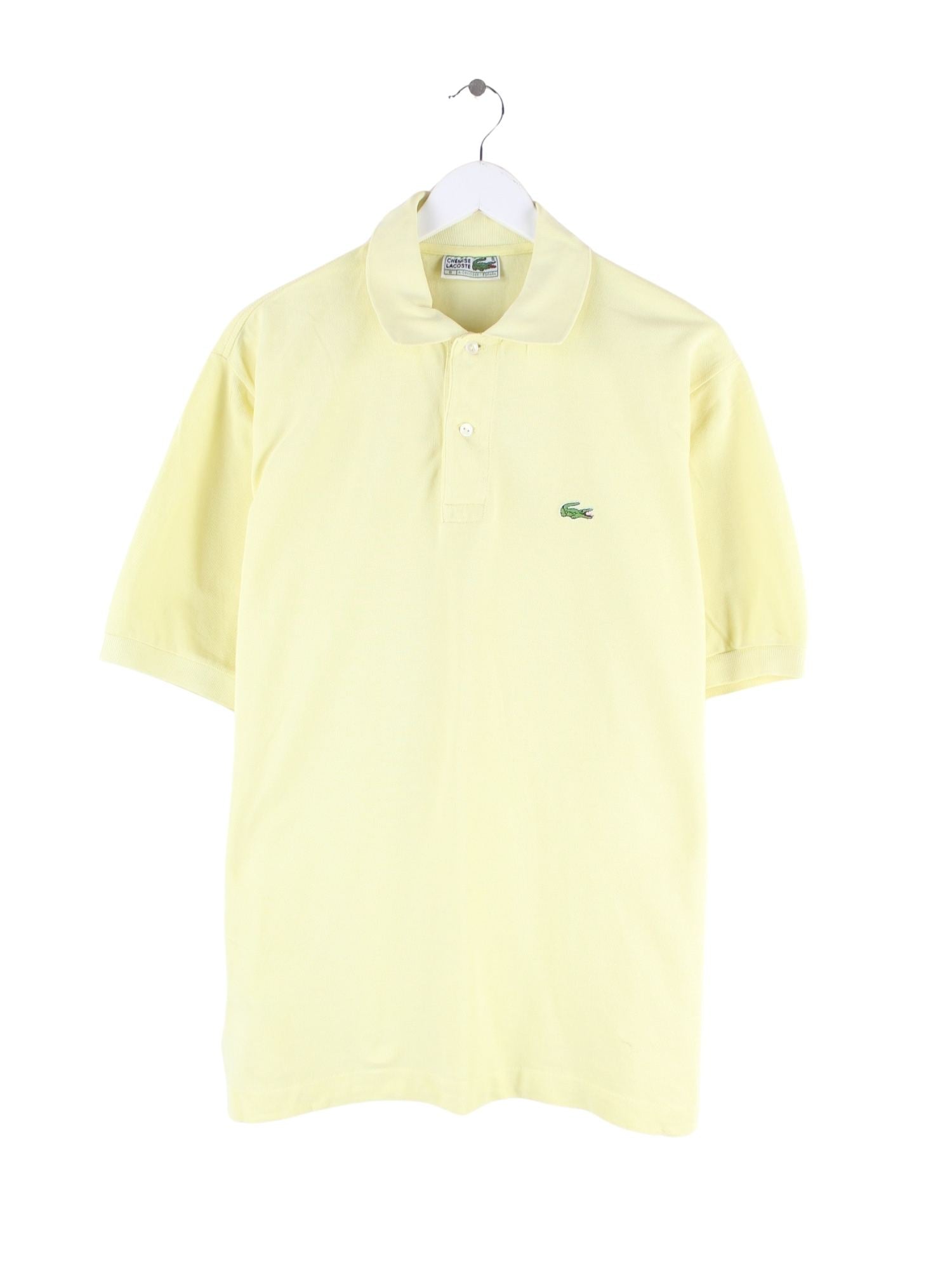 Gelbes Poloshirt vom Brand Lacoste aus den 90'ern in Größe XL. Es ist aus Baumwolle produziert und in sehr gutem Zustand im Bestand.