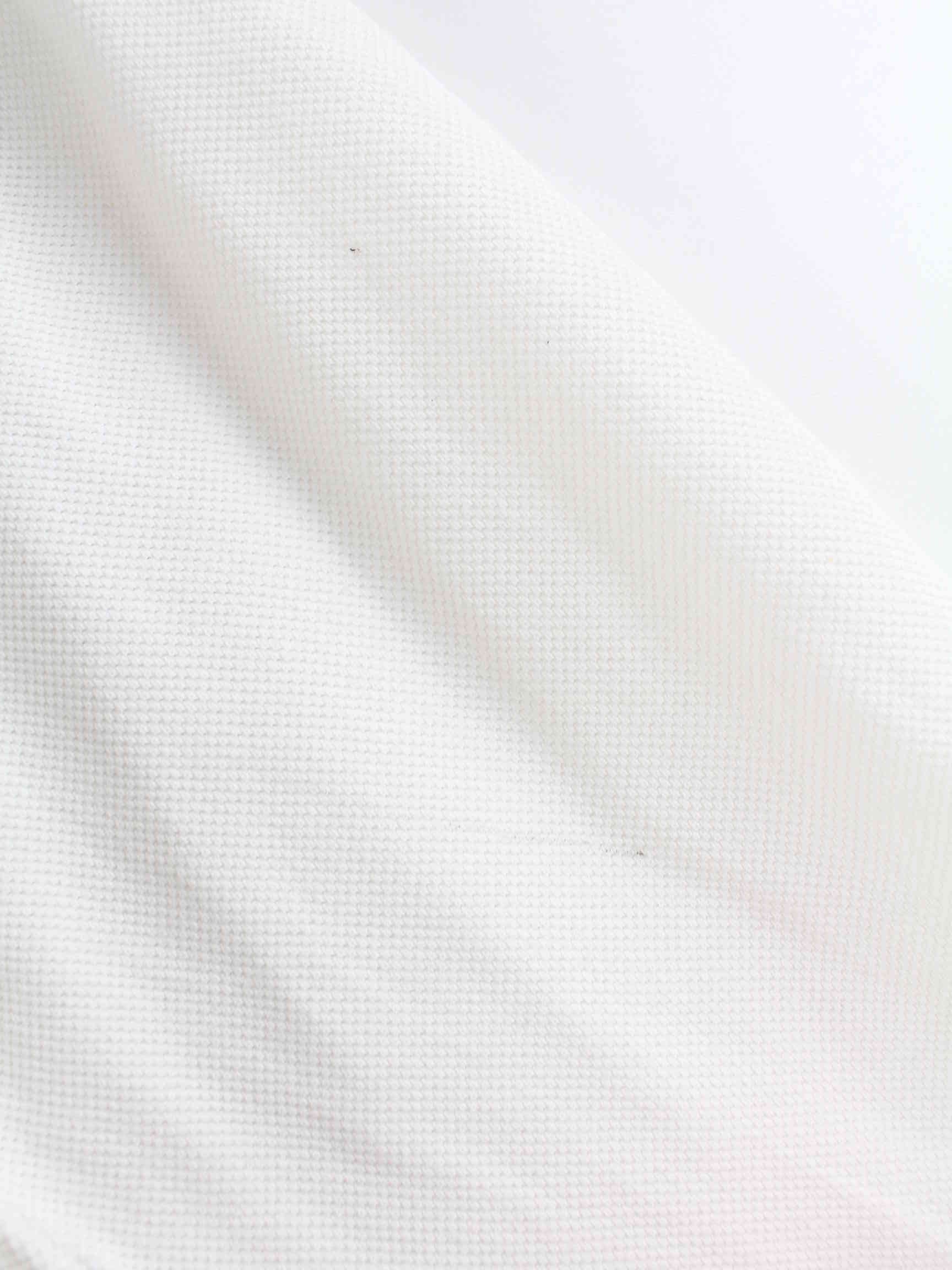 Sweater from the Lacoste label in size M. It is made of a cotton blend and is available in white.