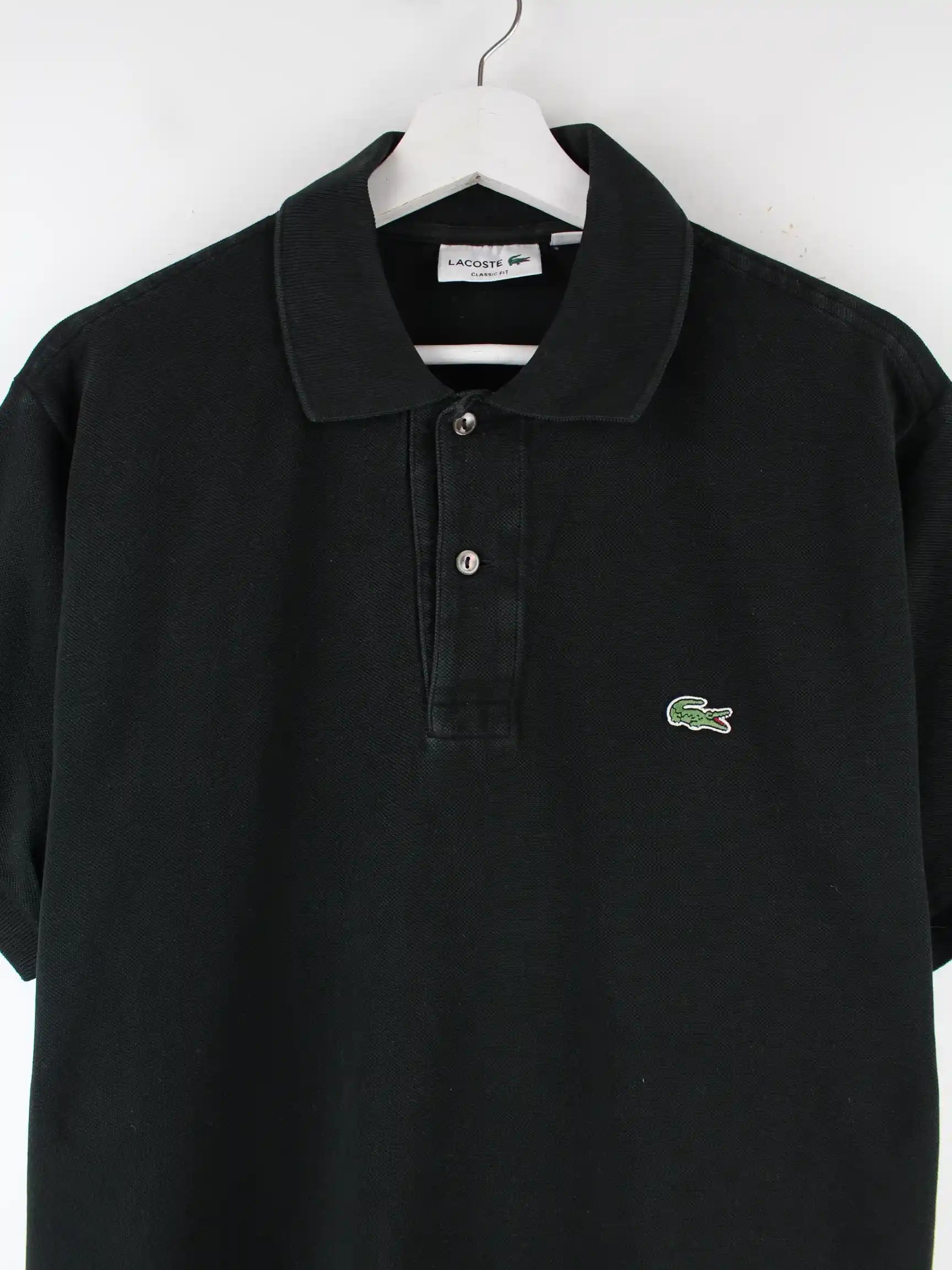 Schwarzes Poloshirt vom Brand Lacoste in Größe L. Es ist aus Baumwolle und in sehr gutem Zustand in Stock.