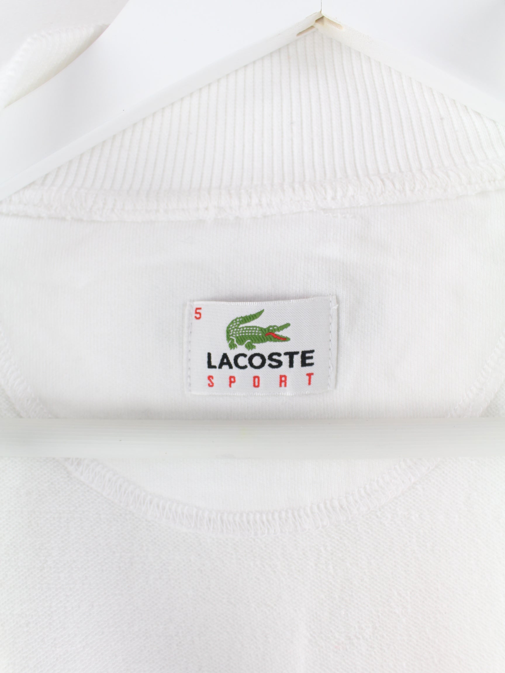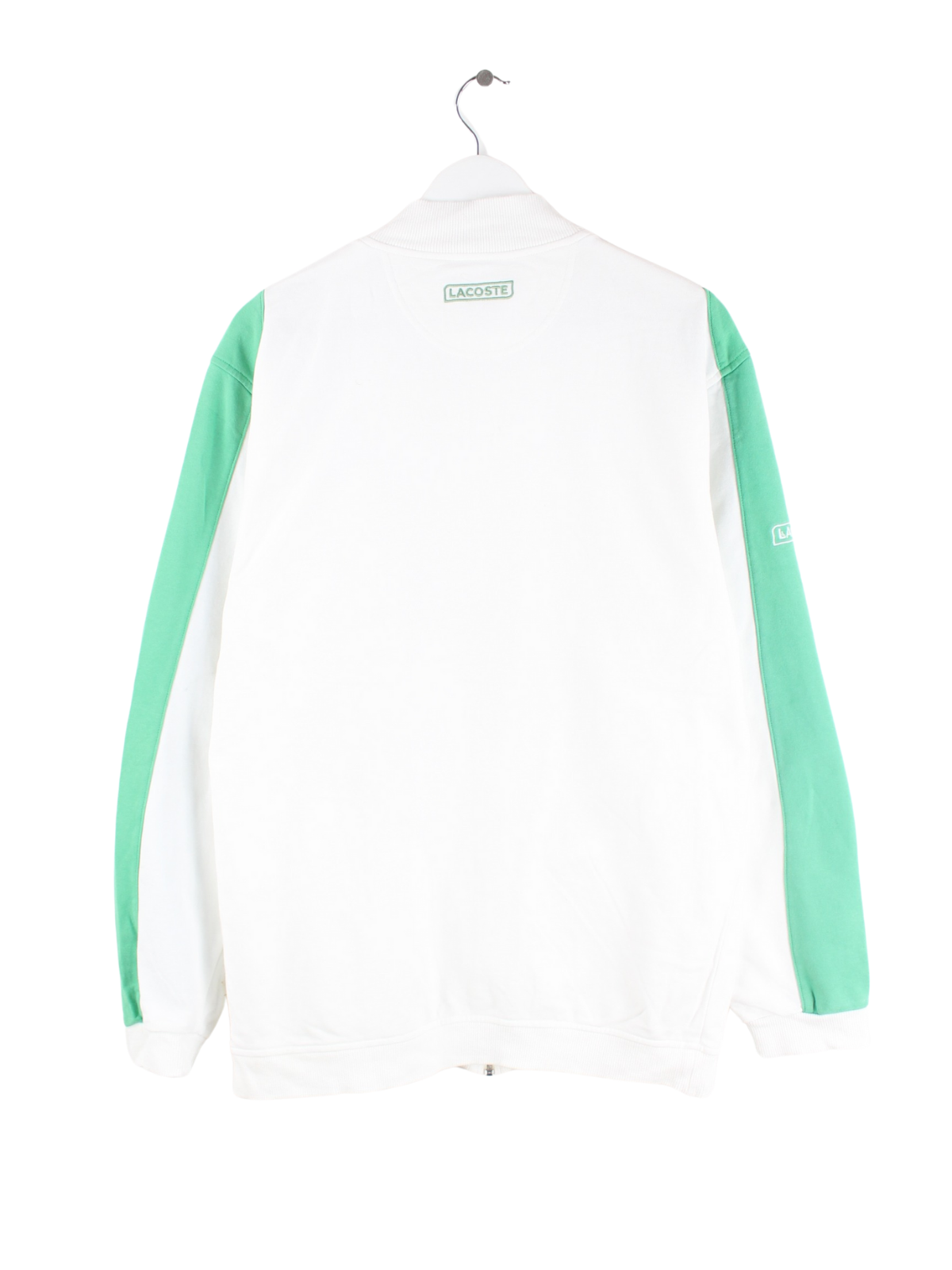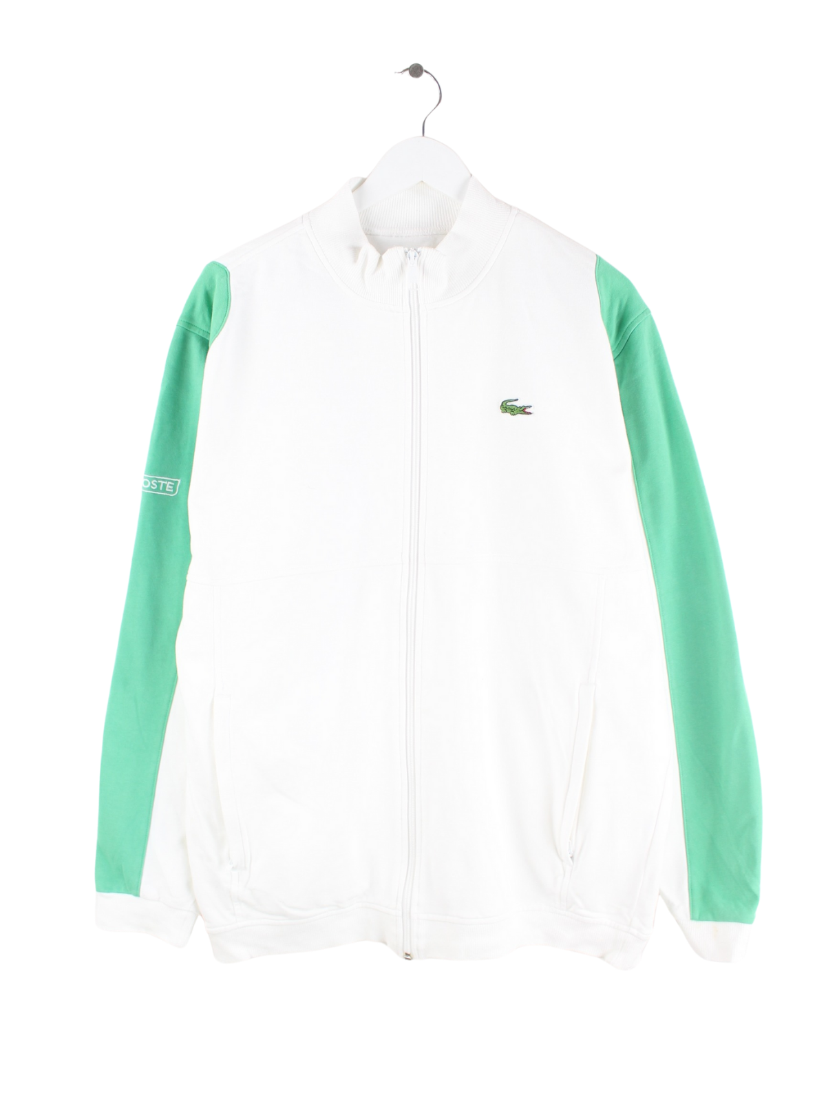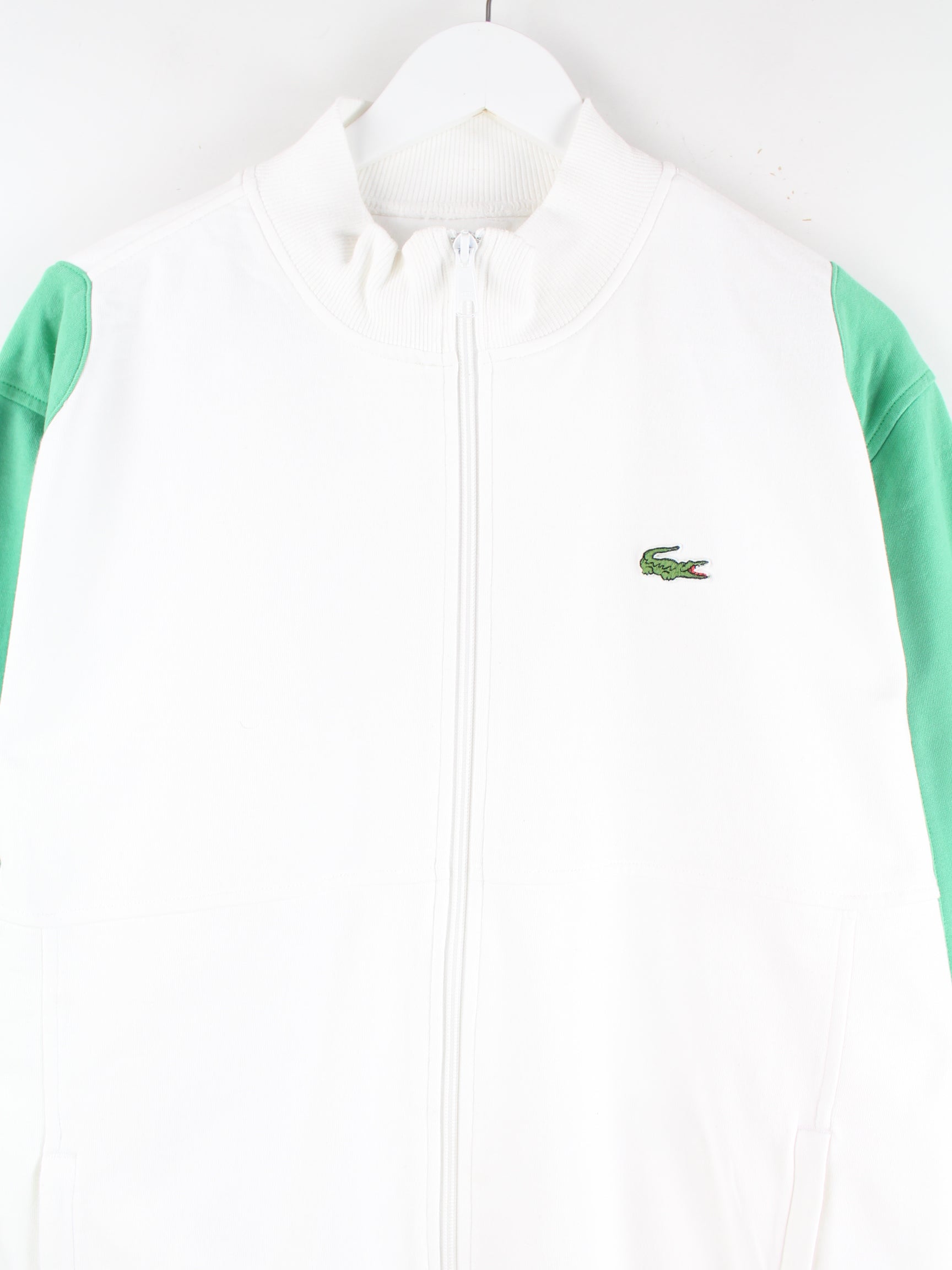 Weiße Trainingsjacke der Marke Lacoste in Größe XL. Sie ist aus einer Baumwollmischung produziert und in gutem Zustand im Bestand.