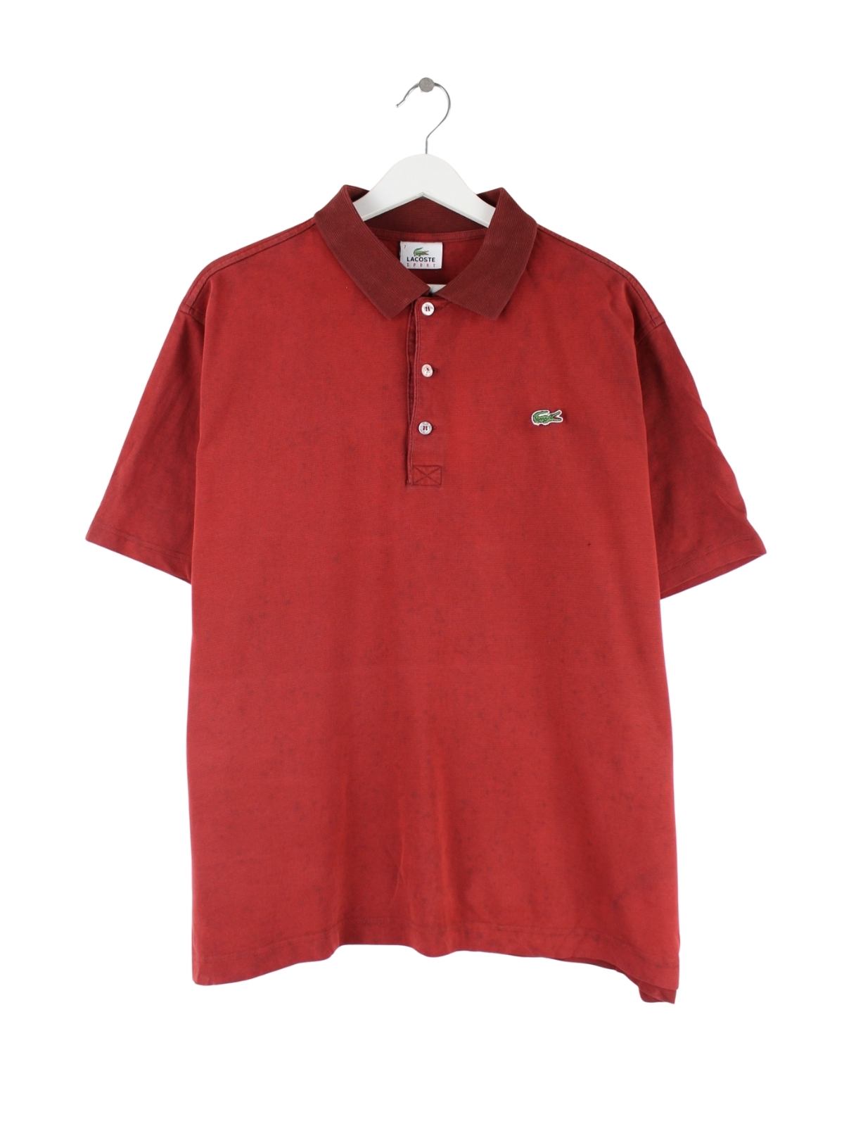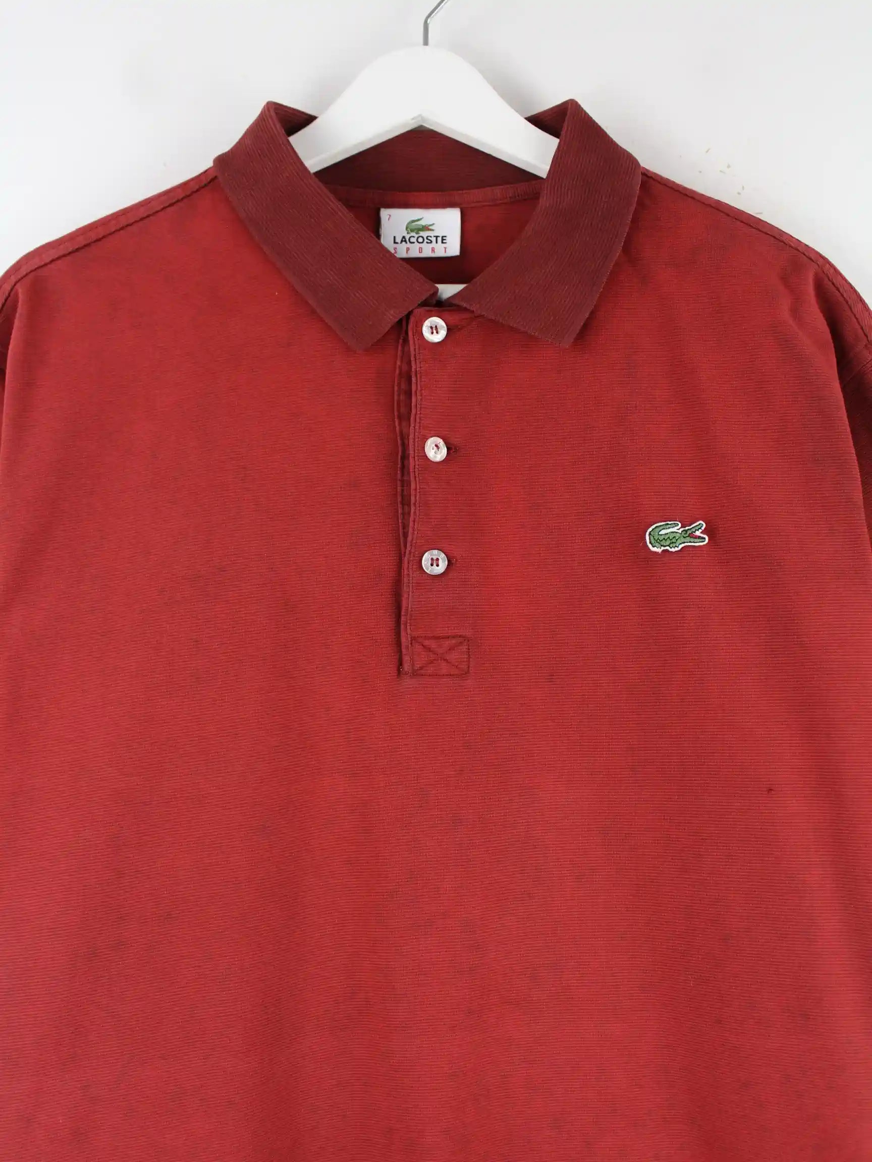 Poloshirt aus dem Hause Lacoste in Größe M. Es ist aus Baumwolle gefertigt und in Rot bei uns zu bekommen.