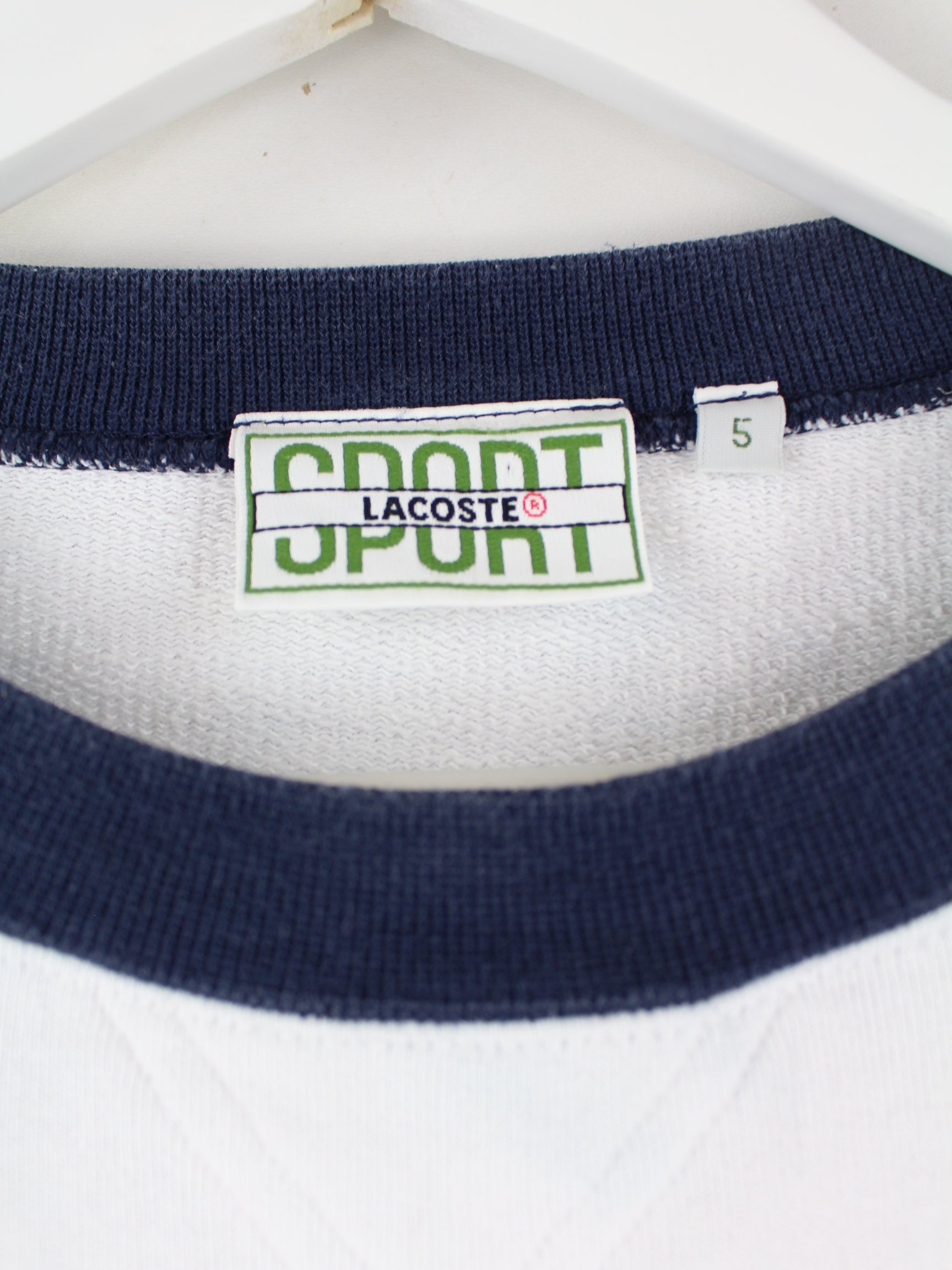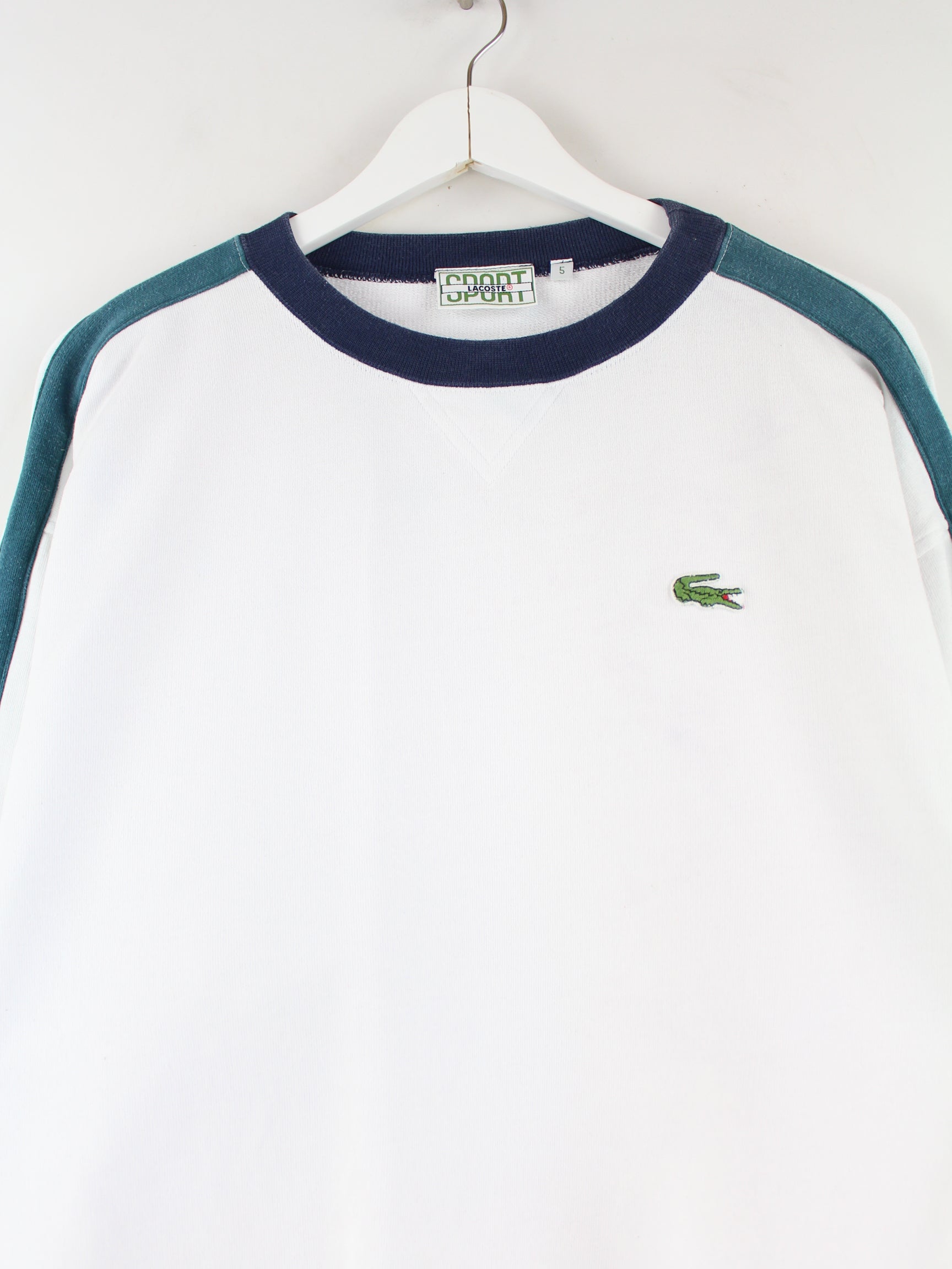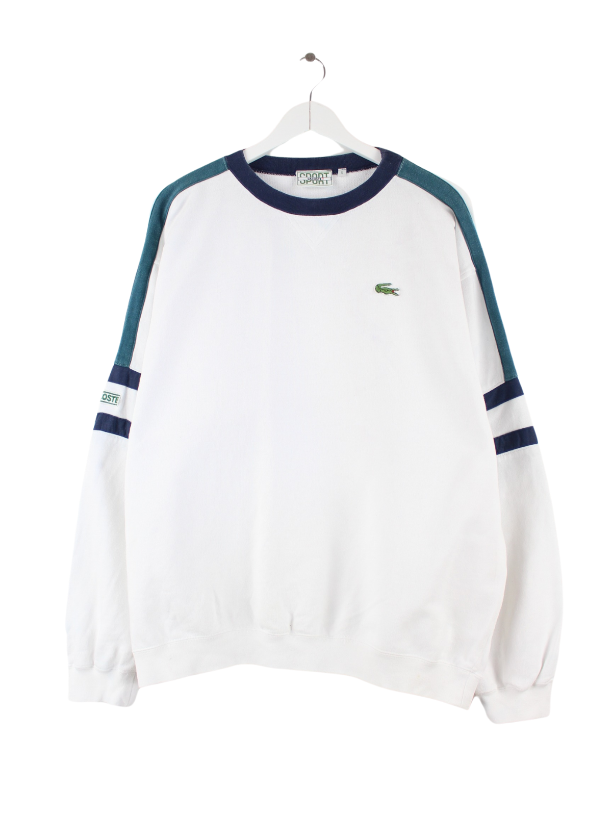 Sweater from the label Lacoste with embroidery in size L. It is made of a cotton blend and is available in white.