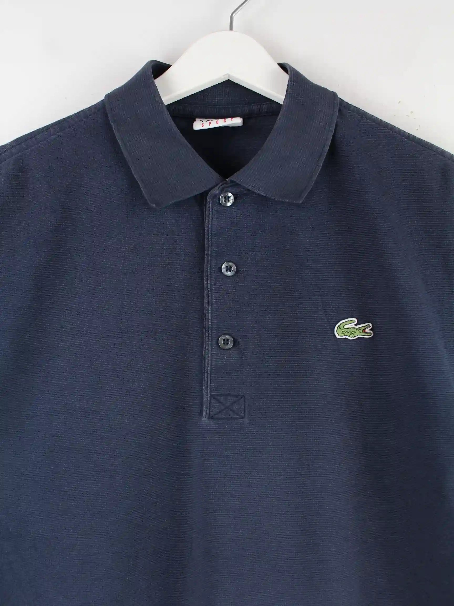 Blaues Poloshirt der Marke Lacoste in Größe S. Es ist aus Baumwolle hergestellt und in sehr gutem Zustand im Bestand.