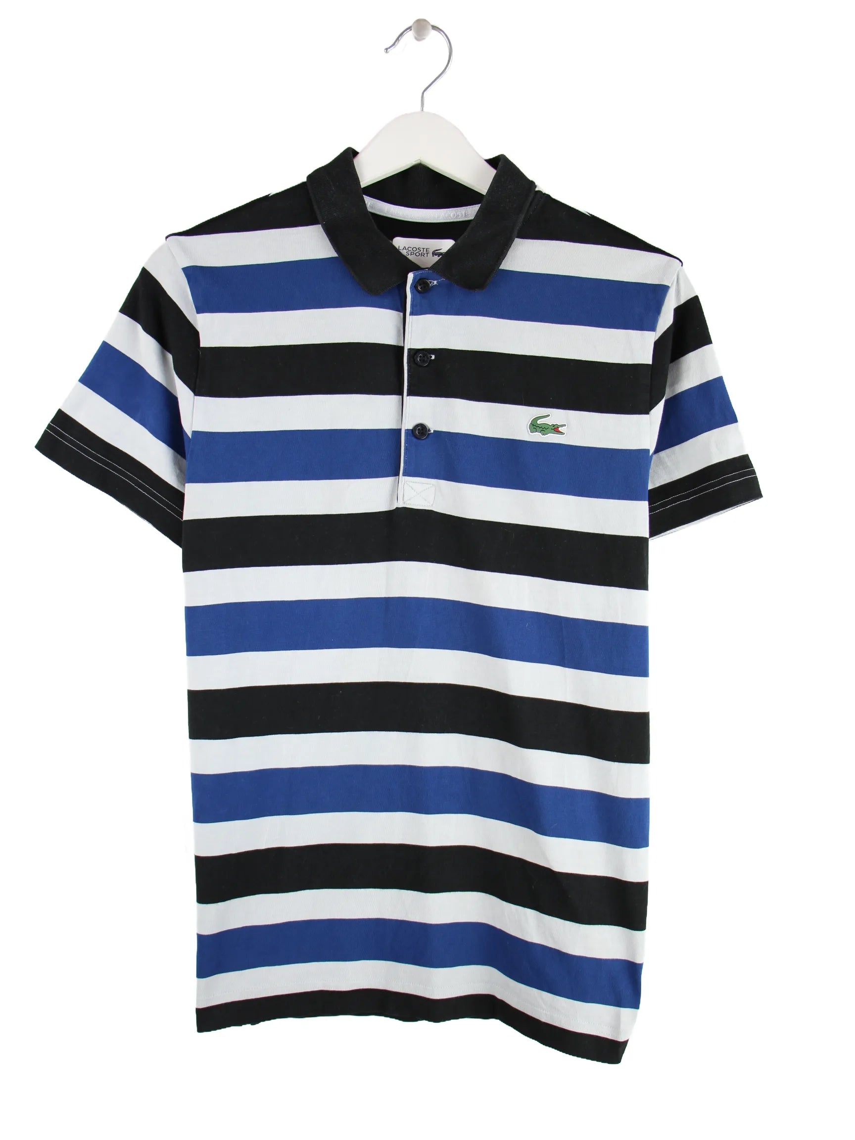 Poloshirt des Labels Lacoste in Größe S. Es ist aus Baumwolle gefertigt und in Blau bei uns vorrätig.