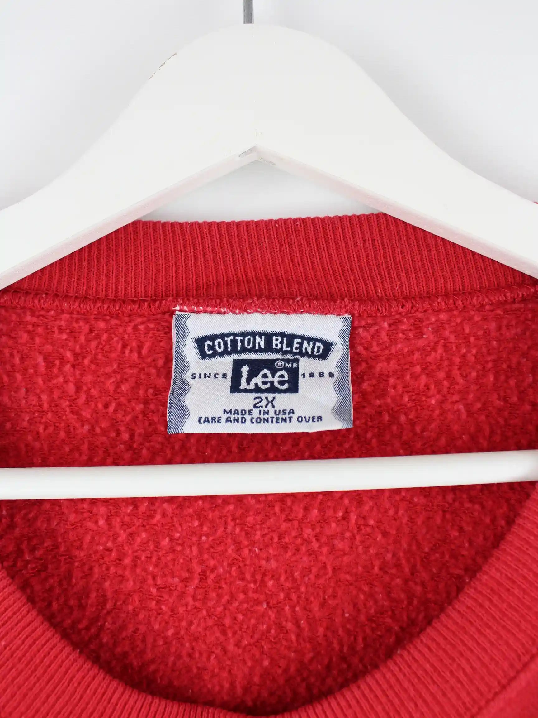 Roter Sweater vom Label Lee in Größe XXL. Er ist aus einer Baumwollmischung gefertigt und in sehr gutem Zustand in Stock. Mit seltenem Jesus Print.