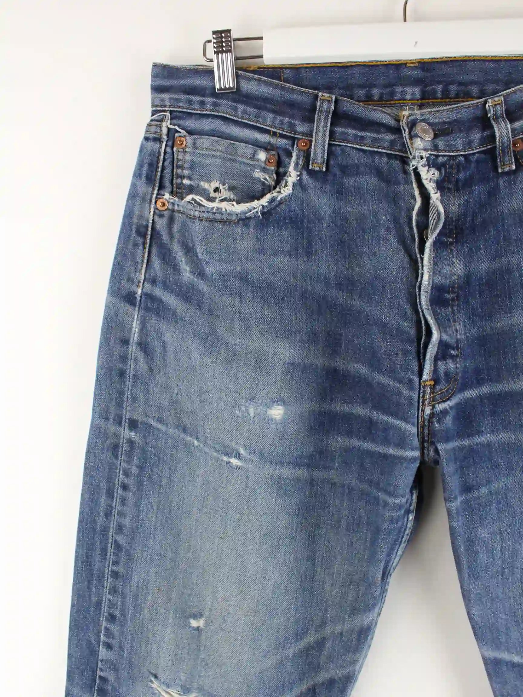 Blaue Levi's 501 Used Look Jeans in Größe W34 x L34 in gutem Zustand.