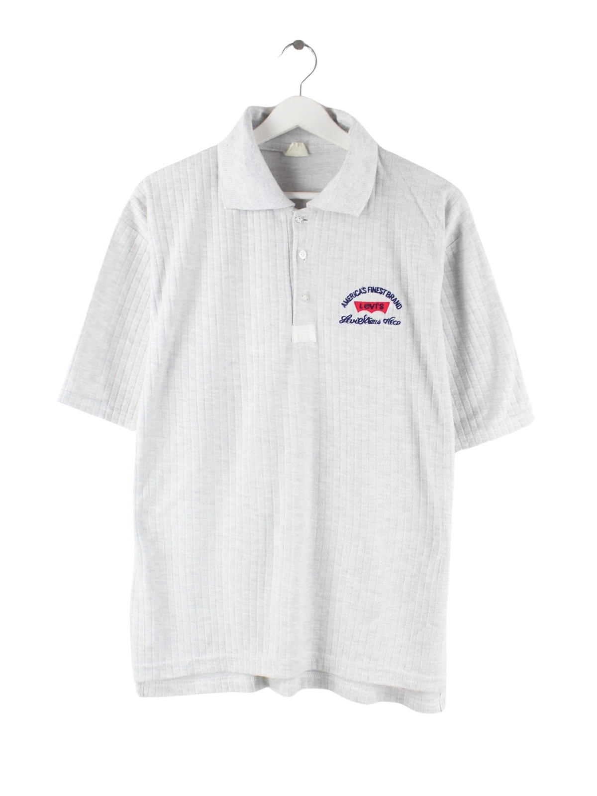 Poloshirt von Levi's mit Stickereien in Größe L aus den 90'ern. Es ist aus Baumwolle produziert und in Grau zu bekommen.
