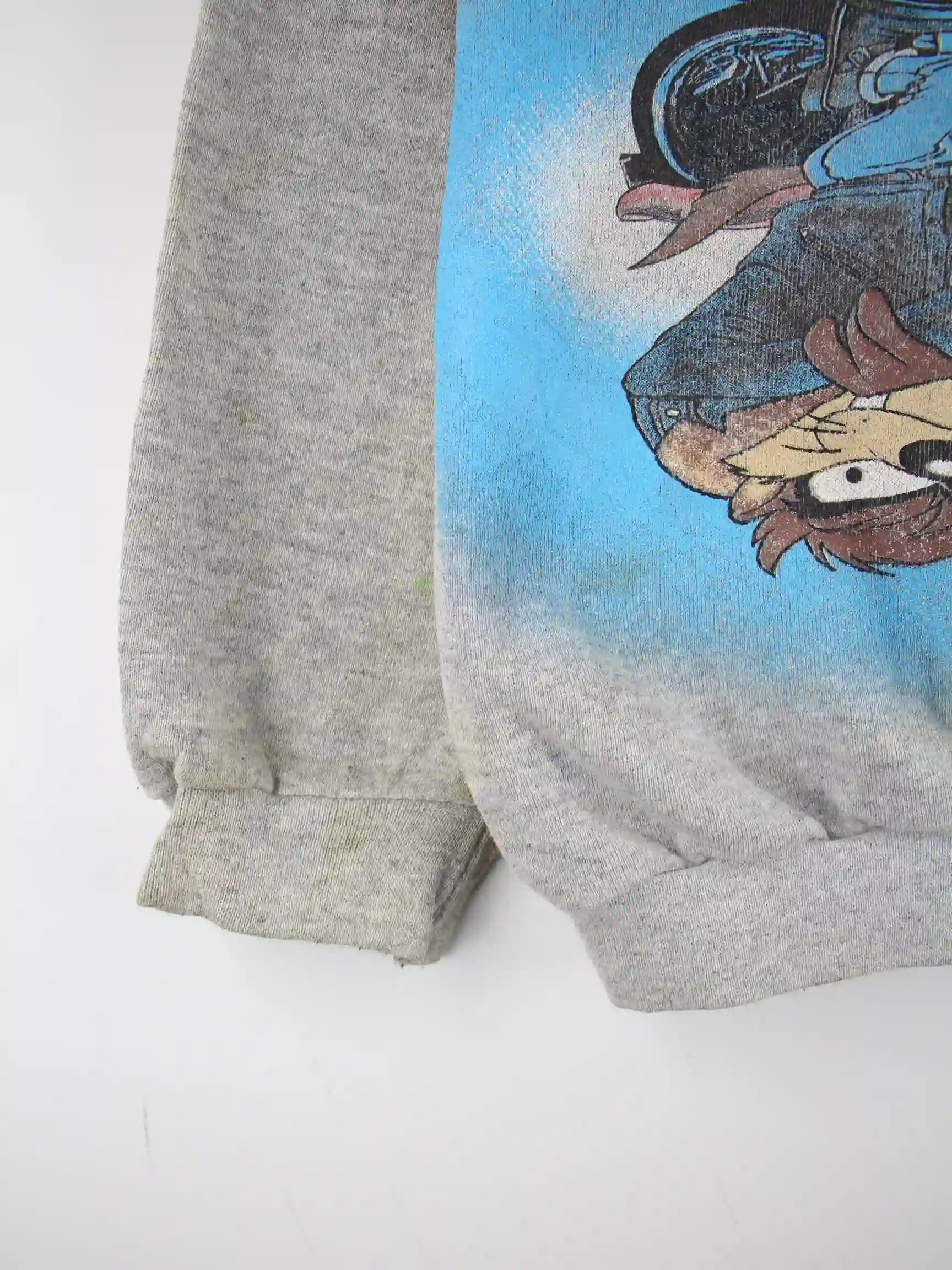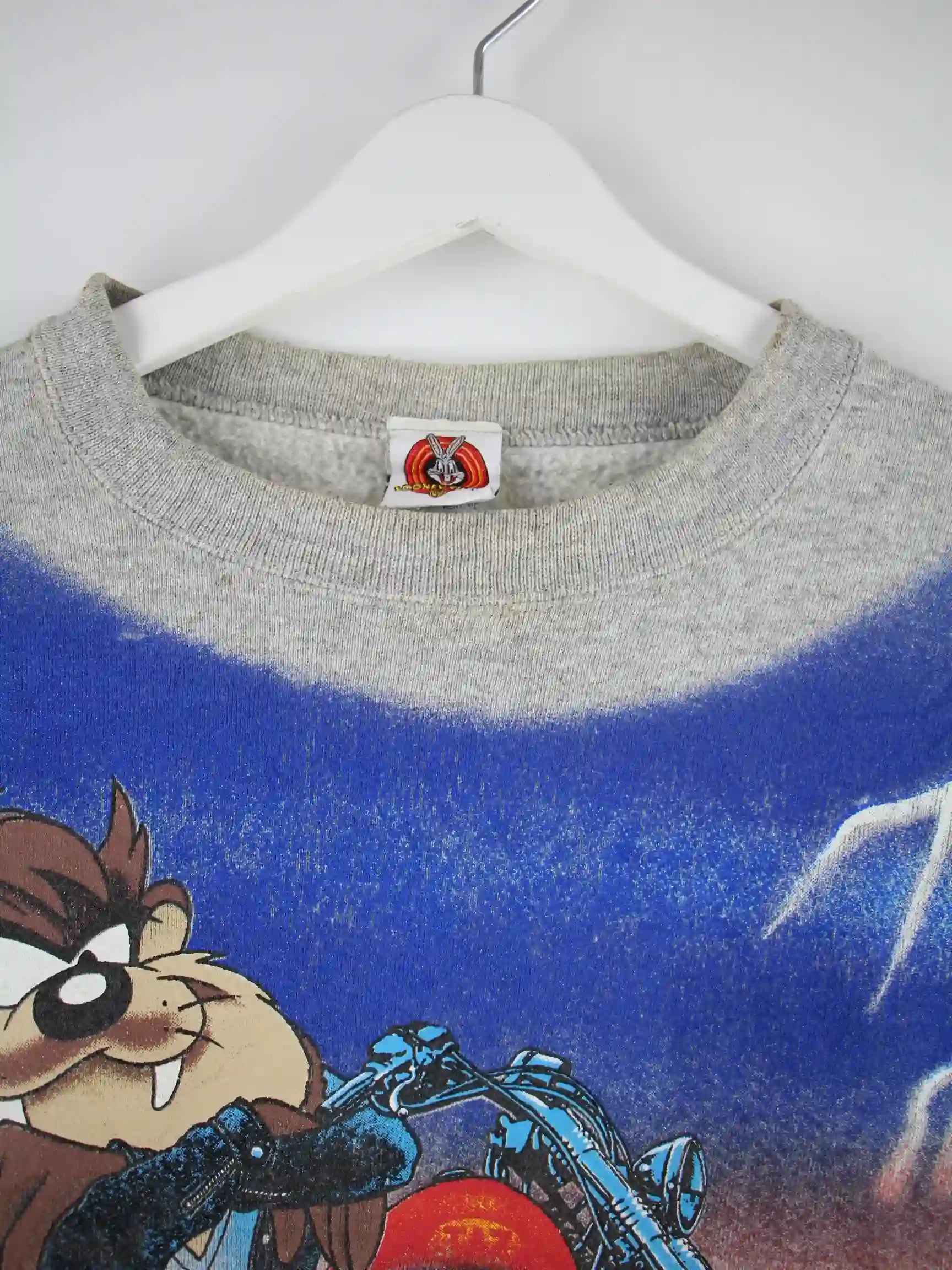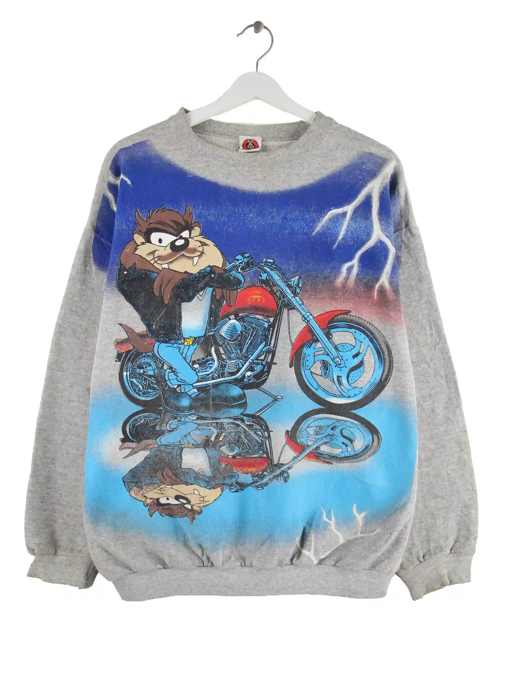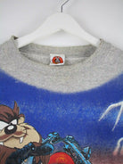 Looney Tunes 90s Vintage Taz Biker Print Sweater Grau L