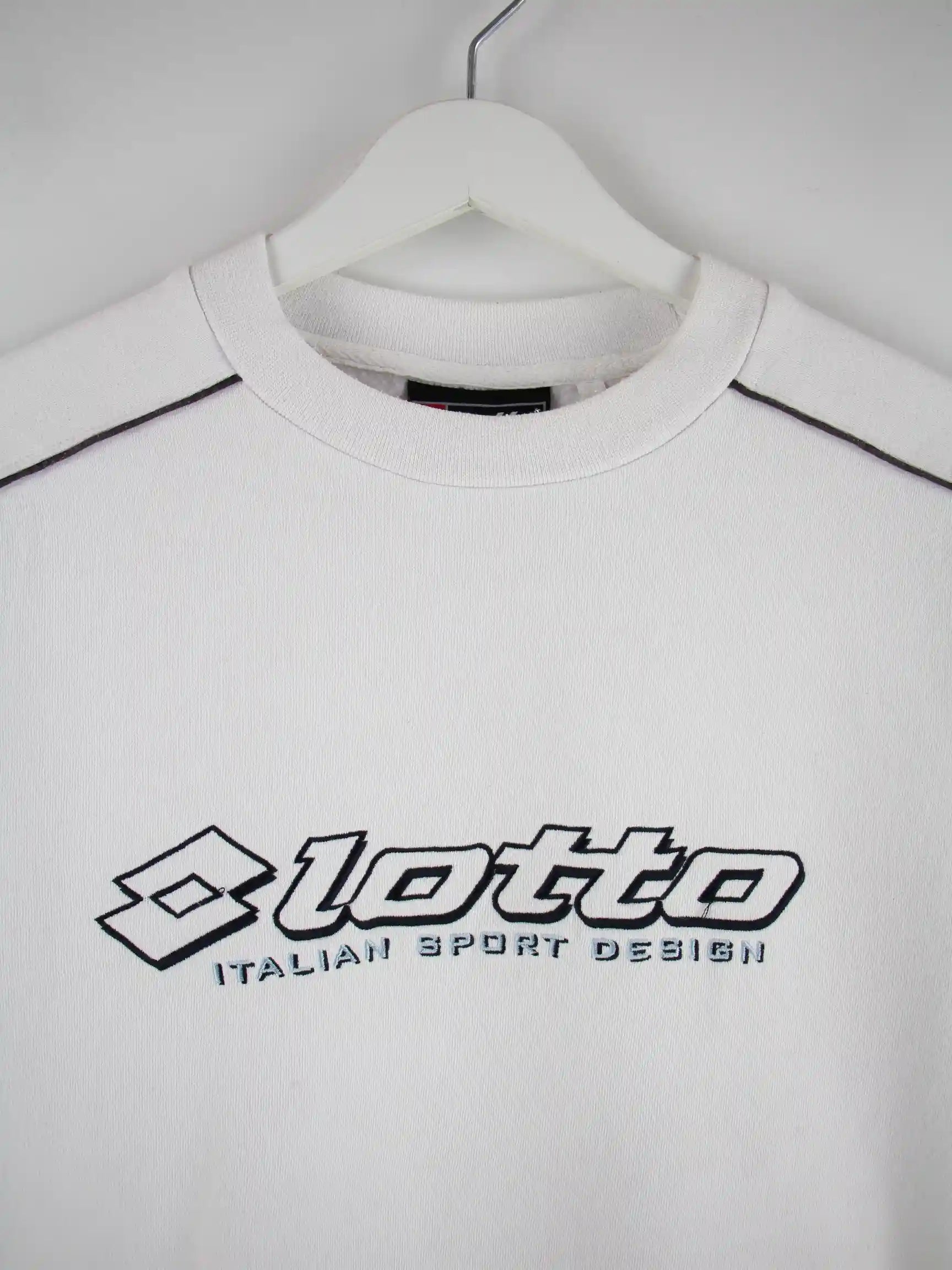 Weißer Sweater der Brand Lotto in Größe M. Er ist aus einer Baumwollmischung und in sehr gutem Zustand bei uns zu bekommen.