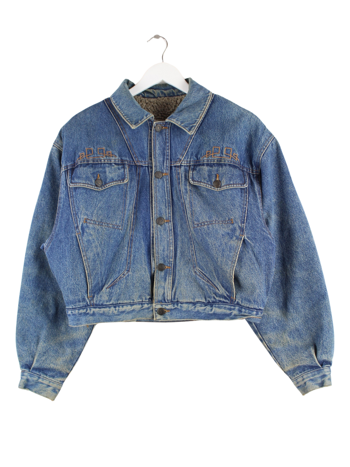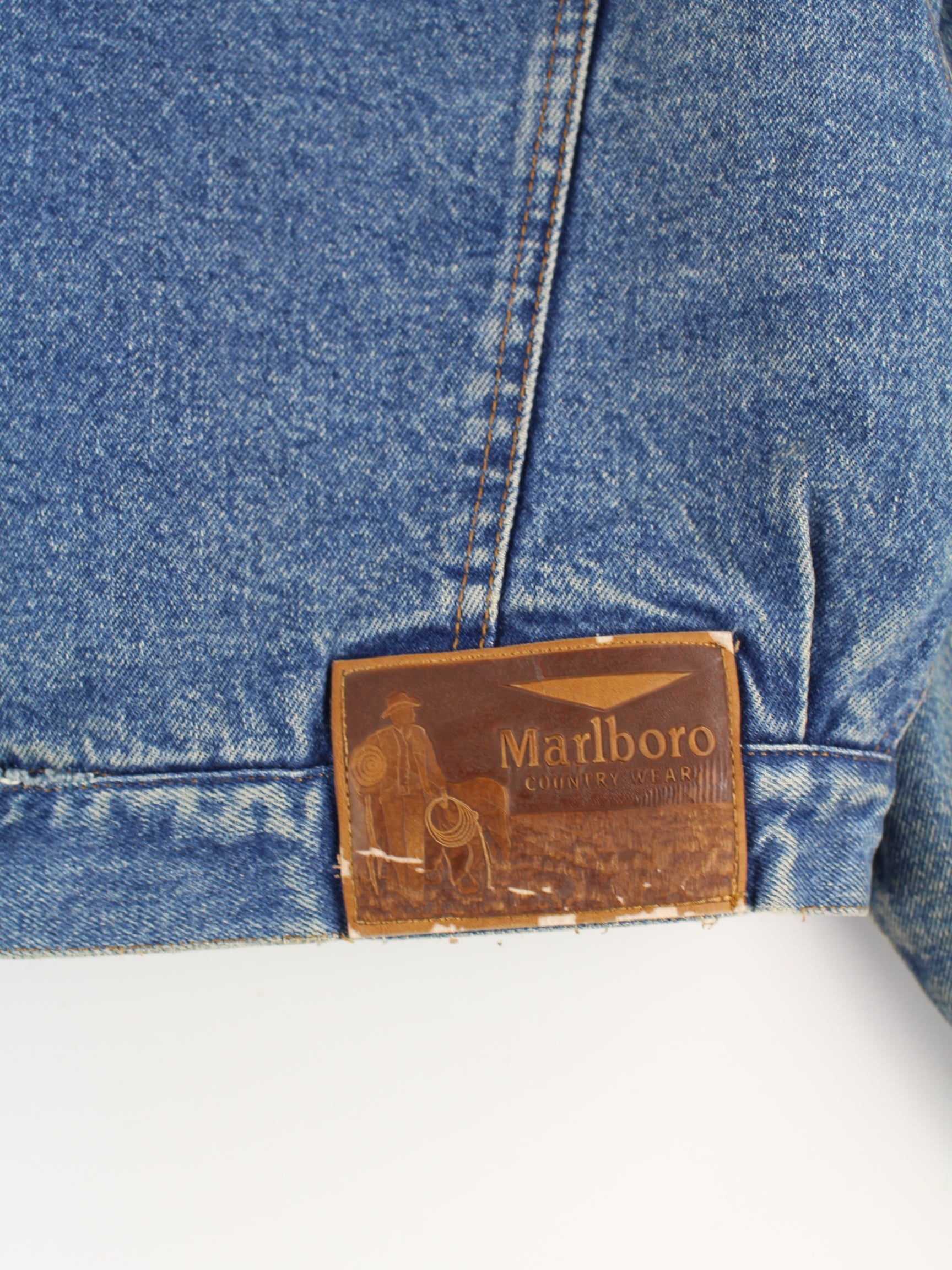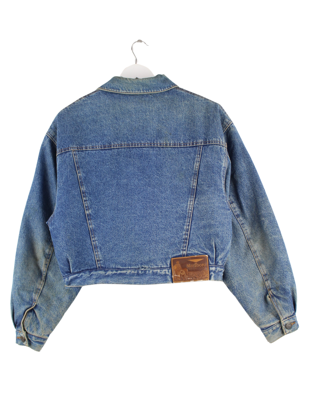 Marlboro Women's 80s Vintage Lined Crop Jeans Jacket Blue S