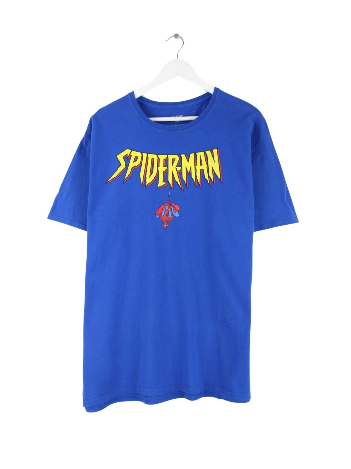 T-Shirt vom Label Marvel in Größe XXL. Es ist aus Baumwolle gefertigt und in Blau zu haben. Mit tollem Spiderman Print.
