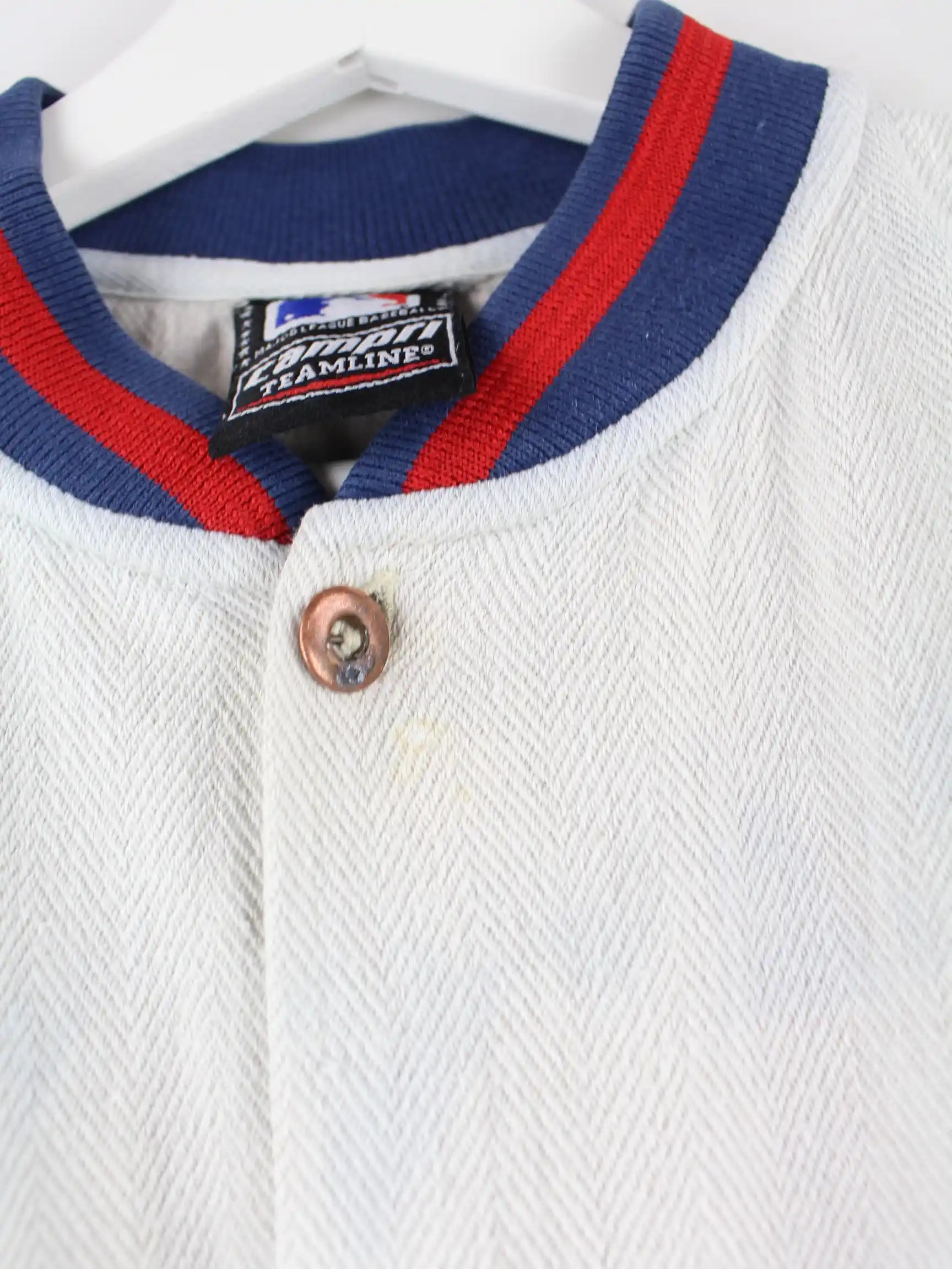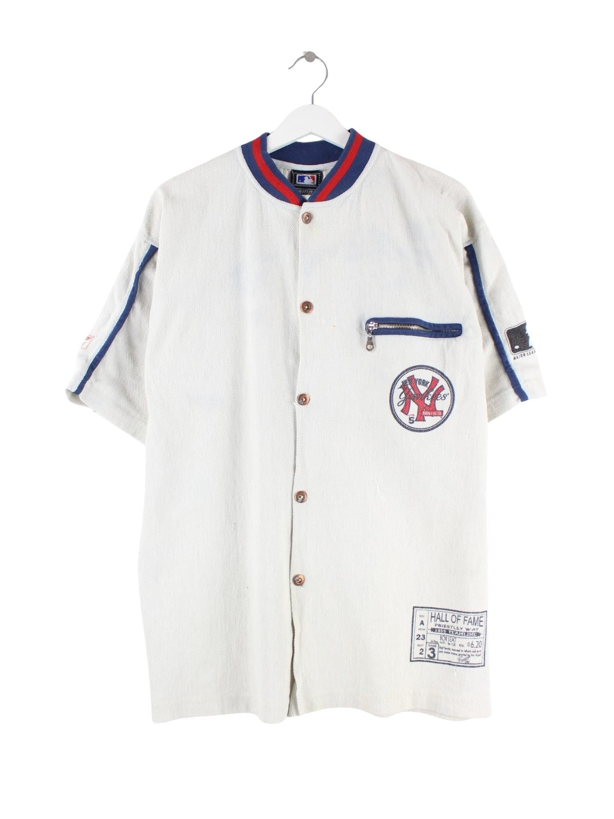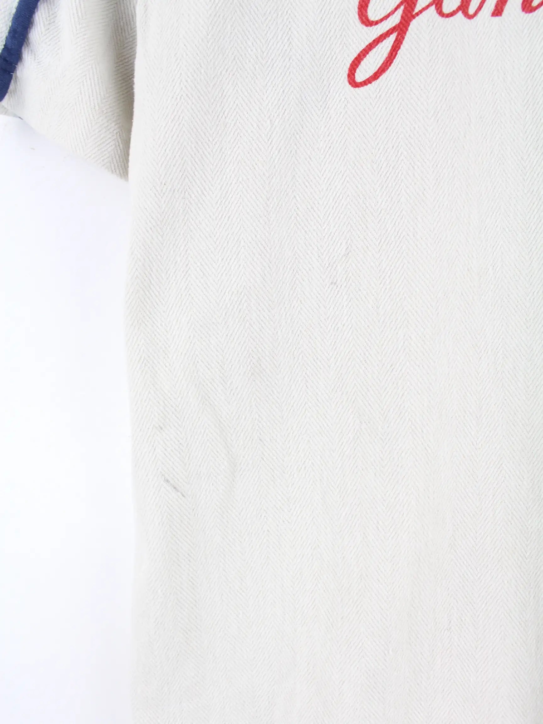 Beigefarbener Jersey von MLB aus den 90'ern in Größe XL. Es ist aus einer Baumwollmischung hergestellt. Den Zustand würden wir als 'In Ordnung' bezeichnen (vergl. Bilder).Mit chiquem Yankees Print.