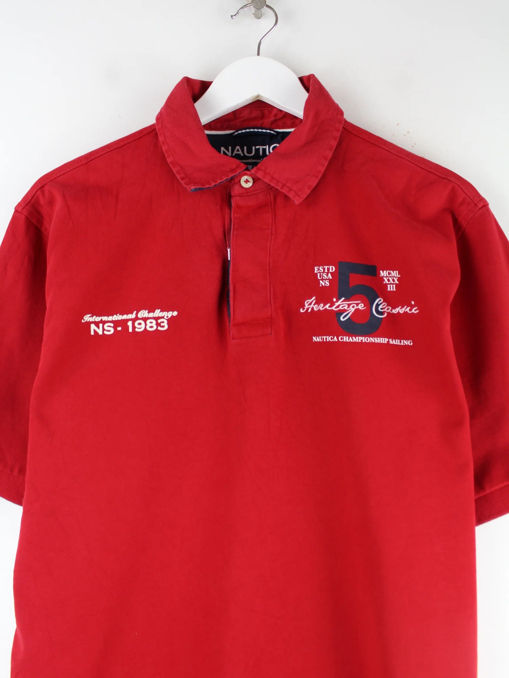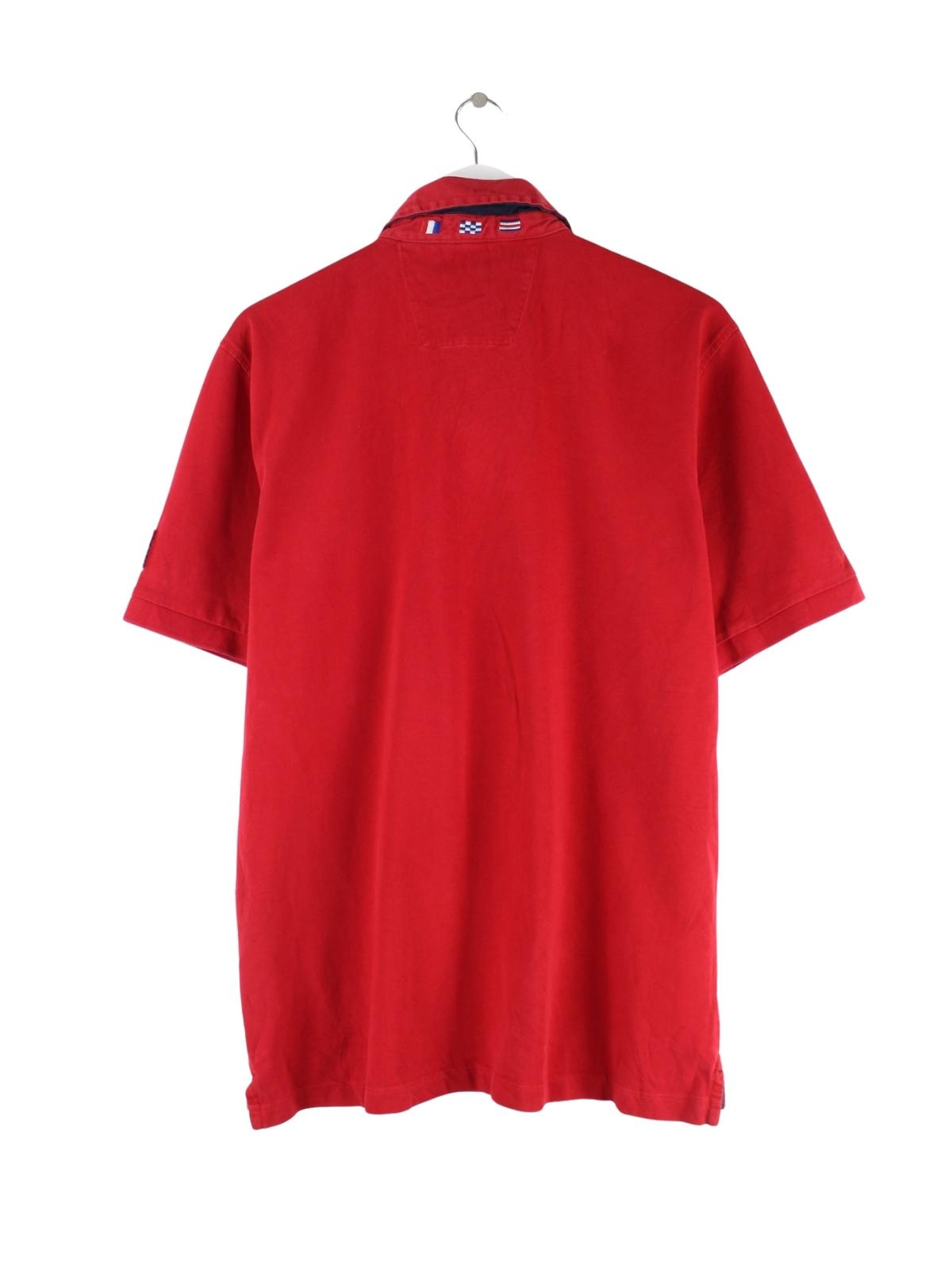 Rotes Poloshirt mit Stickereien vom Brand Nautica in Größe L. Es ist aus Baumwolle gefertigt und in sehr gutem Zustand im Angebot.