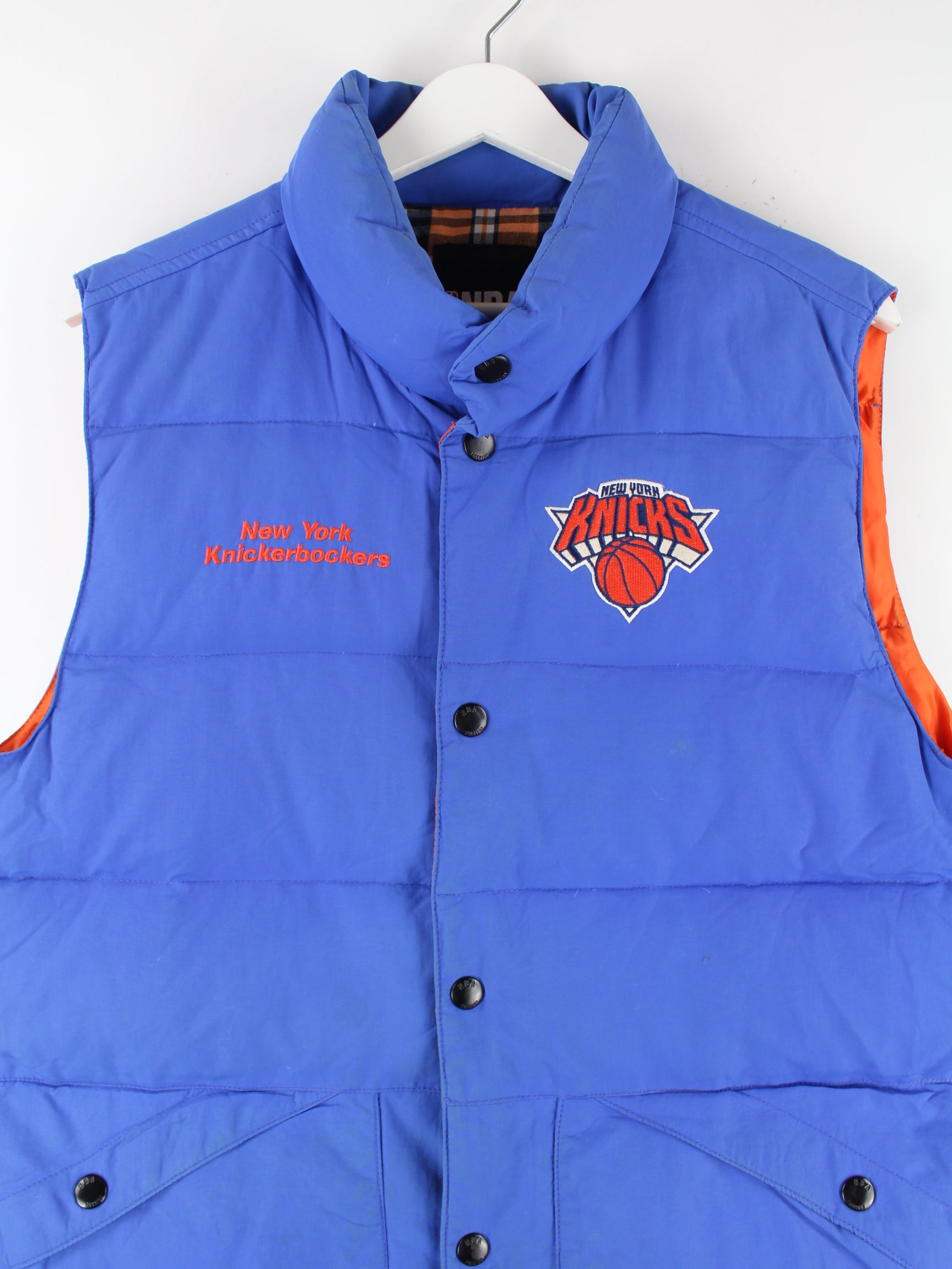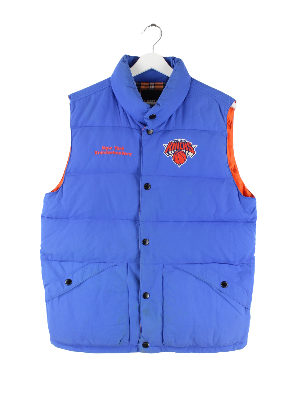 Blaue Weste mit Stickereien der Brand NBA in Größe L. Sie ist aus Synthetik gefertigt. Den Zustand würden wir als 'In Ordnung' bezeichnen (vergl. Bilder).