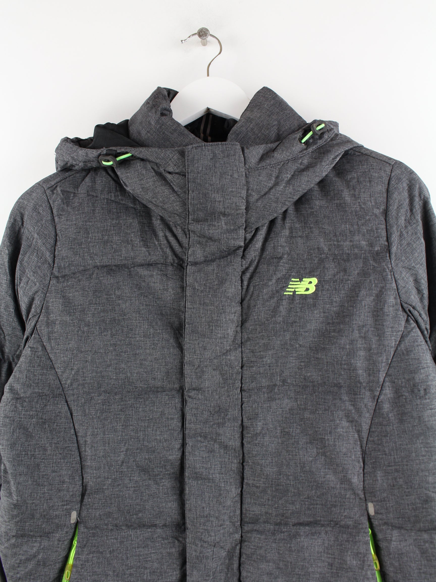 Very nice jacket from the brand New Balance in size S. It is made of synthetic material and is available in gray.