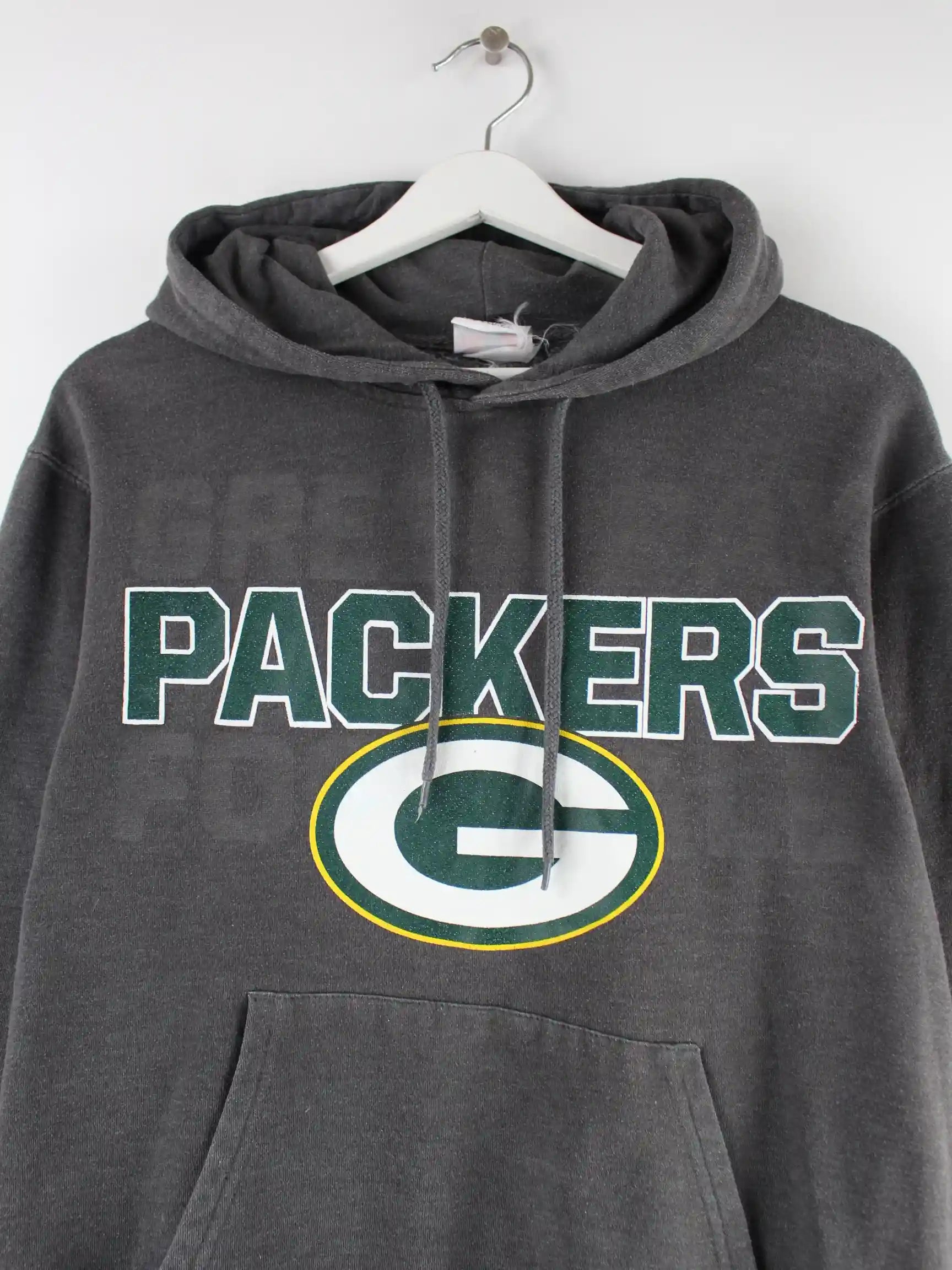 Grauer Hoodie von NFL in Größe XS. Er ist aus einer Baumwollmischung hergestellt und in gutem Zustand in Stock. Mit seltenem Packers Print.