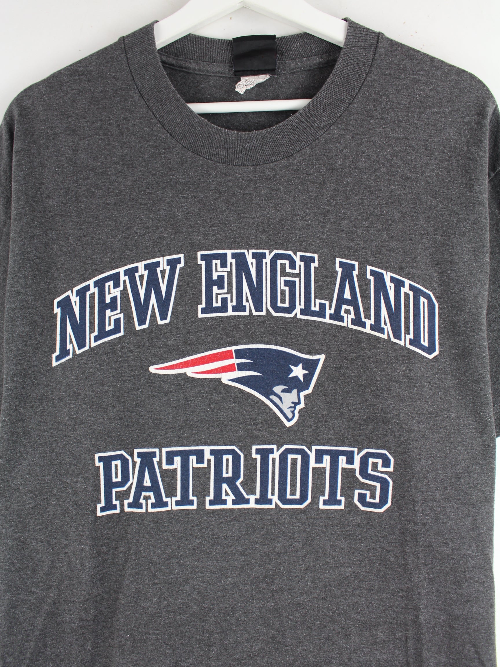 Graues T-Shirt von NFL in Größe L. Es ist aus Baumwolle produziert und in gutem Zustand zu bekommen. Mit schickem Patriots Print.