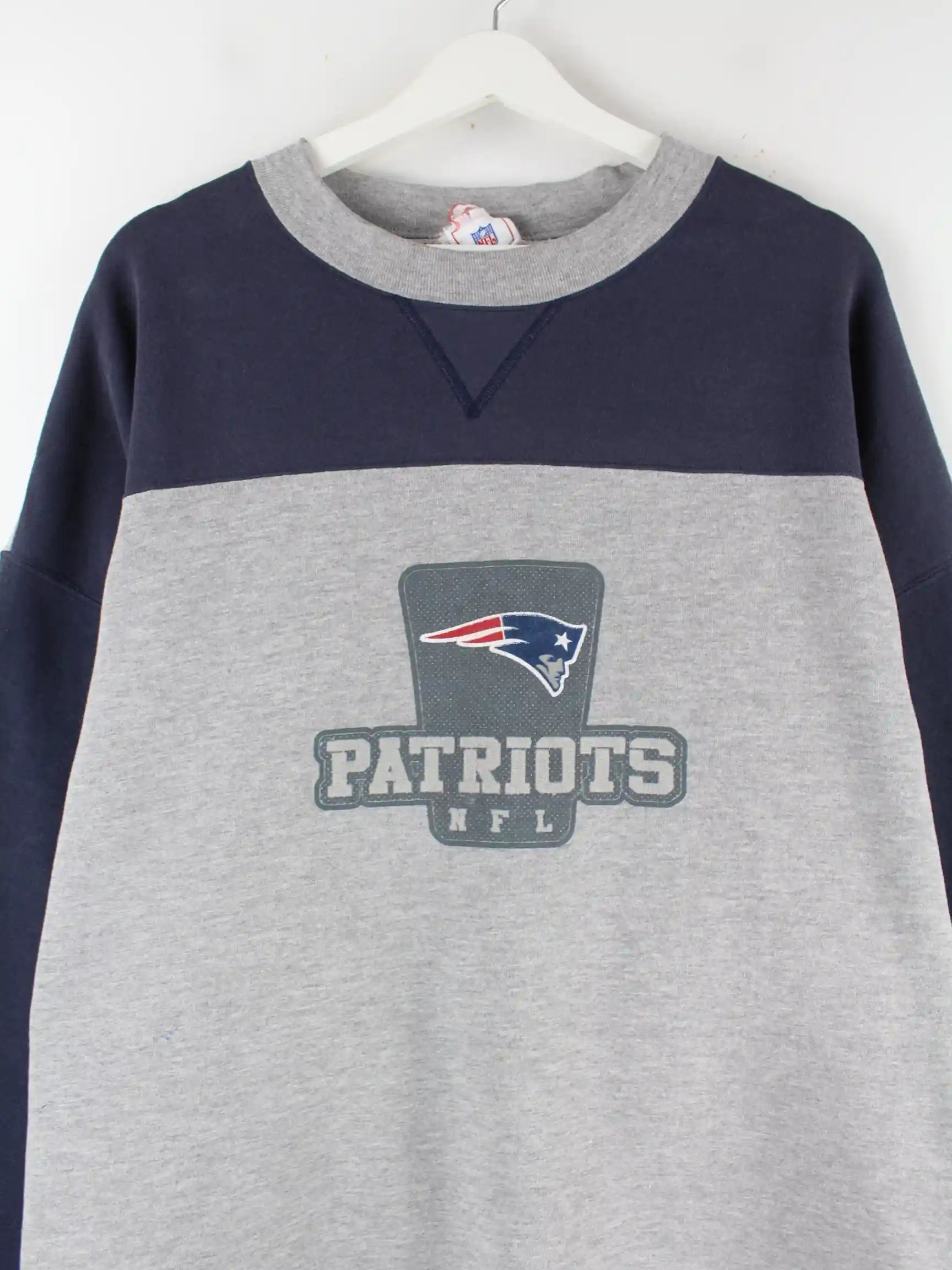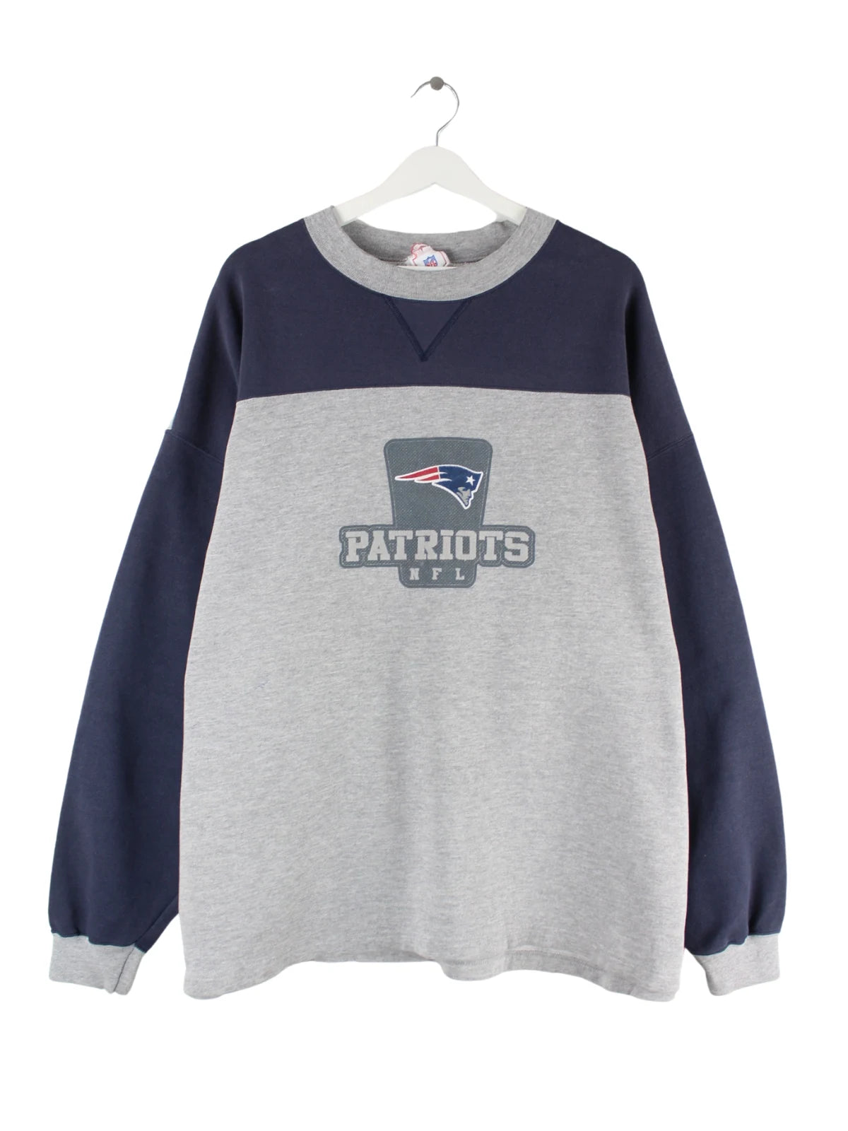 Sweater des Labels NFL in Größe XXL. Er ist aus einer Baumwollmischung angefertigt und in Grau vorrätig. Mit seltenem Patriots Print.