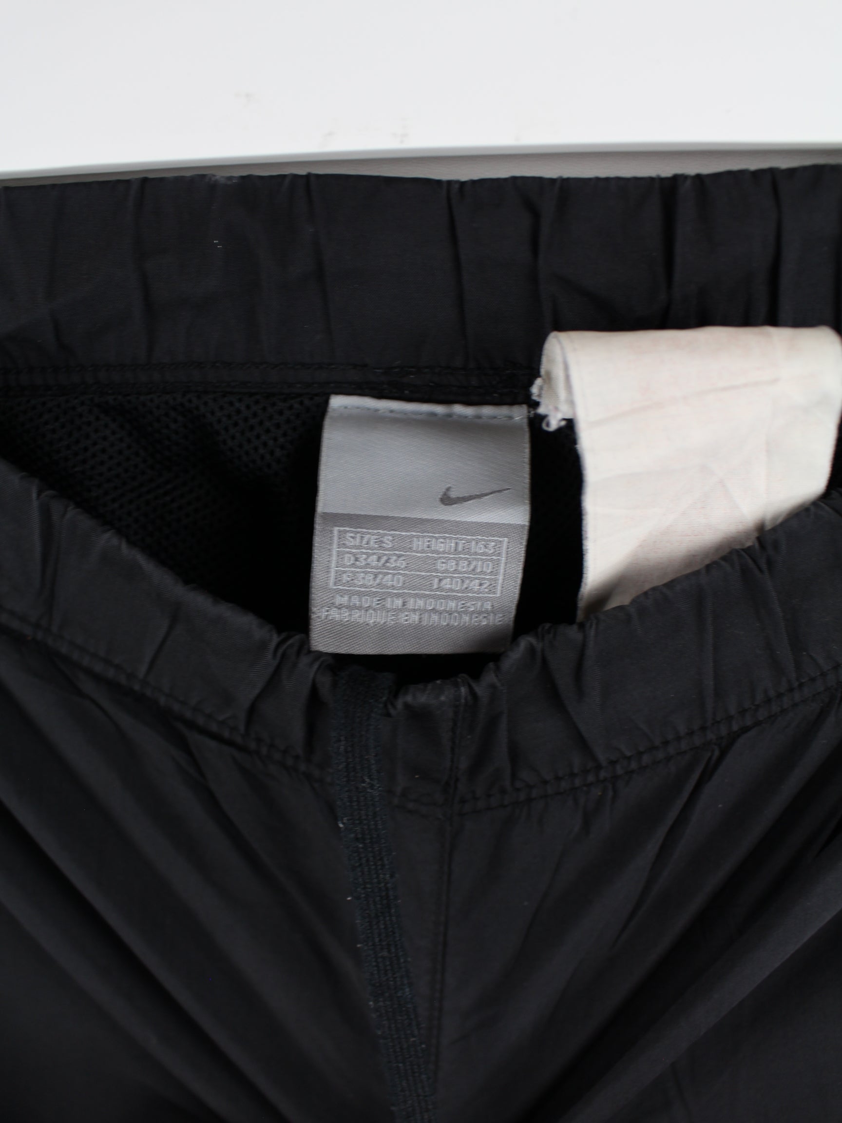 Track pants from the brand Nike in size S. They are made of synthetic material and are available in black.